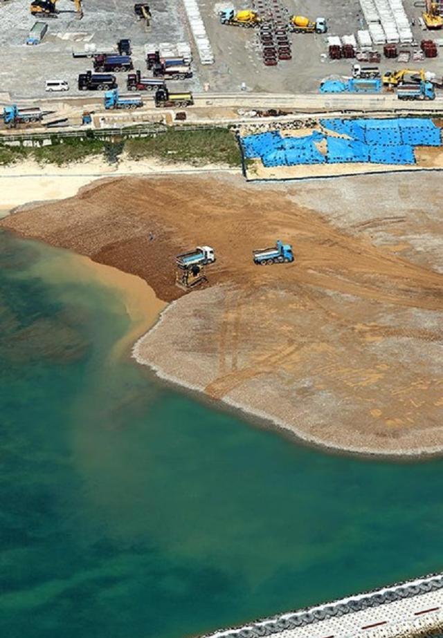 讲日本那是在搞填海造岛,其实说得有点好听,说白了也就是在几块礁石上堆土造地罢了。