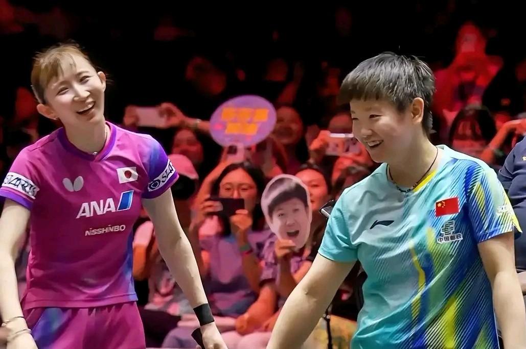 孙颖莎: 早田!打得不错!有长进,看来没少练。 早田希娜: 莎莎学皮了,笑话我呢!打得再好还是输。 孙颖莎: 我是真心话,第三第四局你确实发挥很好。 早田希娜: 也是被你逼的,0:2落后,再不狠就是0:4。 孙颖莎: 士别三日当刮目相待,我还以为你要翻天呢 早田希娜: 翻什么天啊!你一发狠又把我打没脾气了。 孙颖莎: 我的斗志也是让你激发出来的,不狠不行啊 早田希娜: 你已经送我十八连败,要虐我直到退役吗? 孙颖莎: 虐不虐说得那么难听,咱们这叫互相切磋。 早田希娜: 说的也对,这些年我被你切成片搓成团。 孙颖莎: 我又不是厨师,不能只怪我,还有王曼昱呢 早田希娜: 是啊!你切腻了,王曼昱接力搓我。 孙颖莎: 此言差矣,曼昱这两年主要切磋张本美和。 早田希娜: 美和对王曼昱十一连败,她爸也老了十岁。 孙颖莎: 我们只想干好本职工作,没想制造惨案。 早田希娜: 反正遇到你俩凶多吉少,赢球基本没戏。 孙颖莎: 用词不当啊!不是基本没戏,是绝对没戏。
