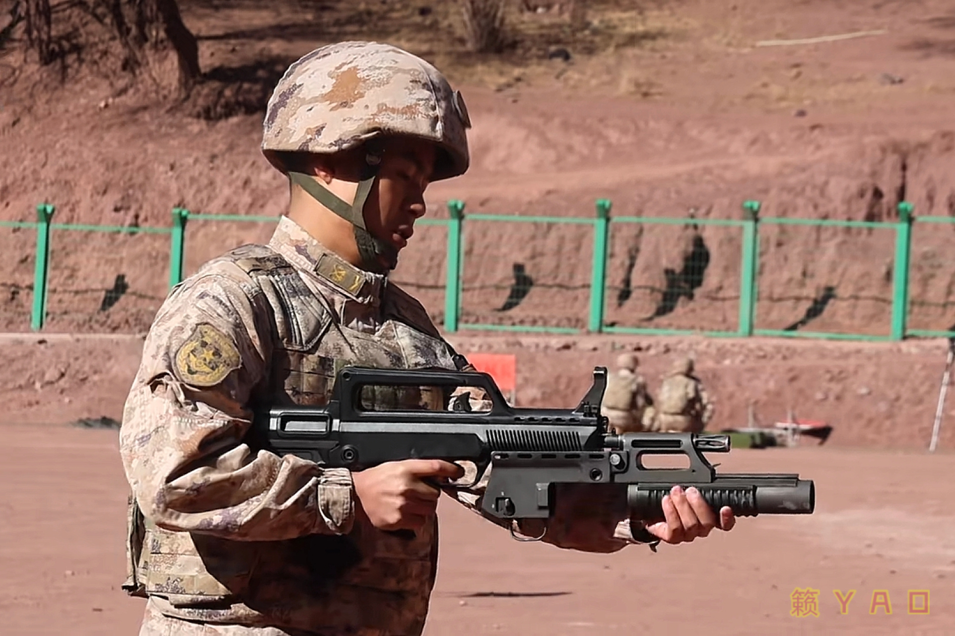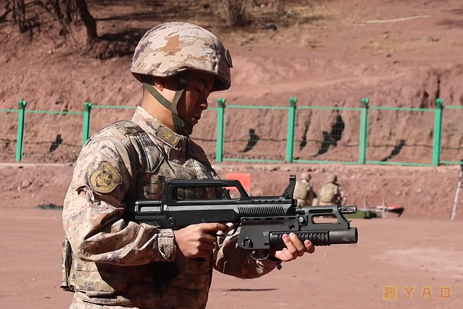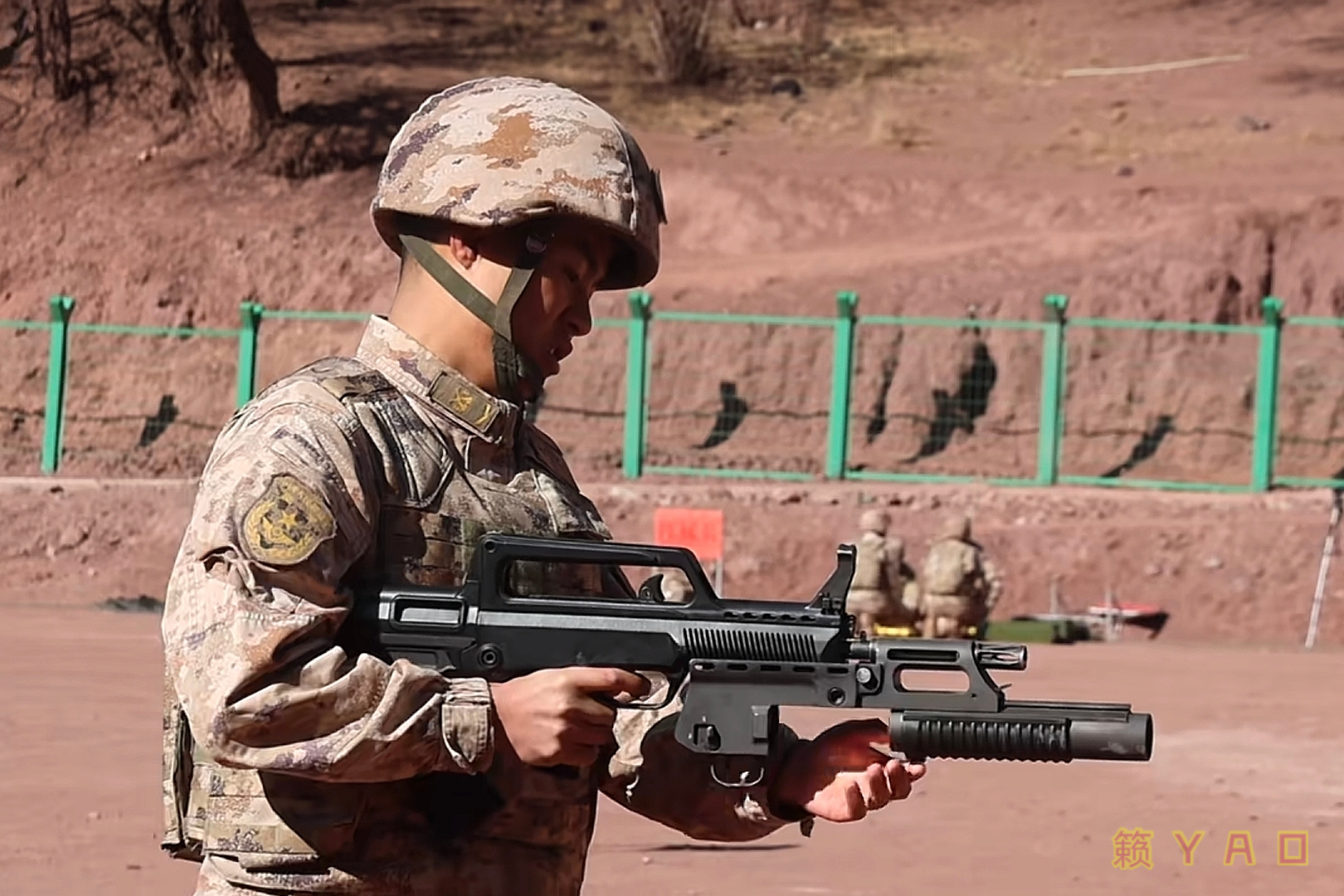 91B型35mm防暴挂榴也算是老万金油了,不过挂95-1步枪上略显不协调,步枪扳机护圈和发射器后端没法配合定位。不过后面也推出了适配95-1步枪的版型,主要区别就是屁股定位那里修了一下外形(P8),就暂且称为91B-1型吧,以示区别,有的单位甚至直接套191步枪上用(P9)。这玩意儿在土陆这边的警勤、侦查、特战等分队有装备(两套皮这玩意儿也不少),主要用于反恐维稳、应急处突等特定任务,不过也有单位在战术演练中拿来打个催泪或者爆震啥的,协助战斗。再往大了说,陆海空、火箭、武条、GA、预备役等单位都见有装备。
