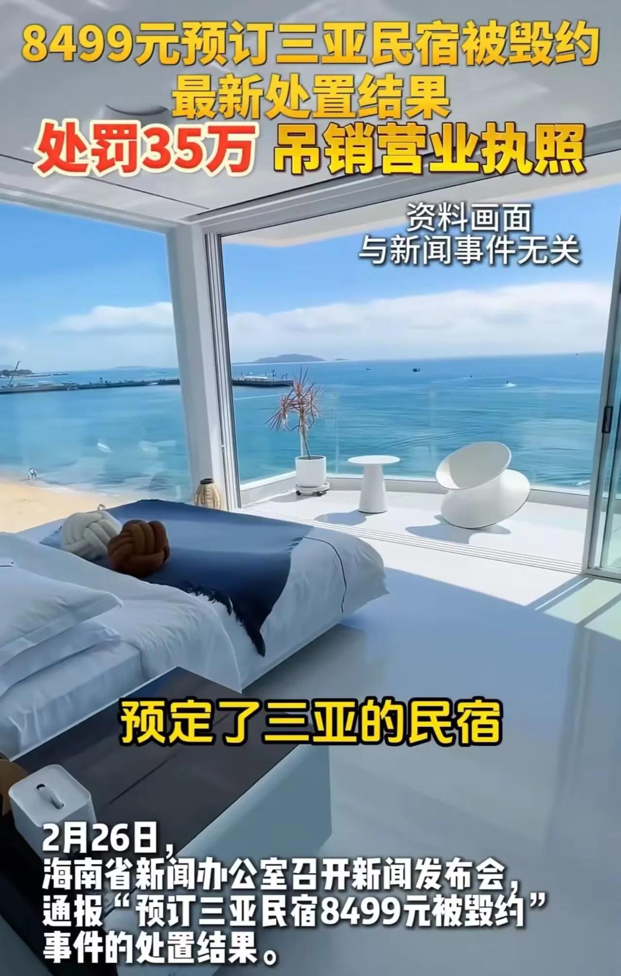 “罚款35万!!!这次海南icon动真格了!”男子花8499元预订三亚民宿,结果