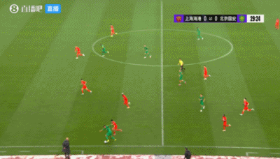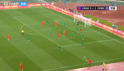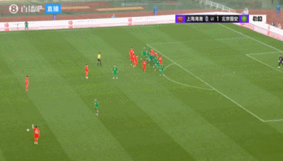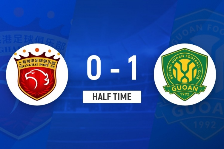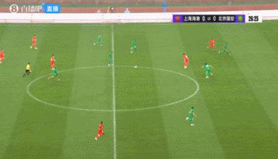 伤停补时4分钟。上半场比赛结束,上海海港0-1北京国安。