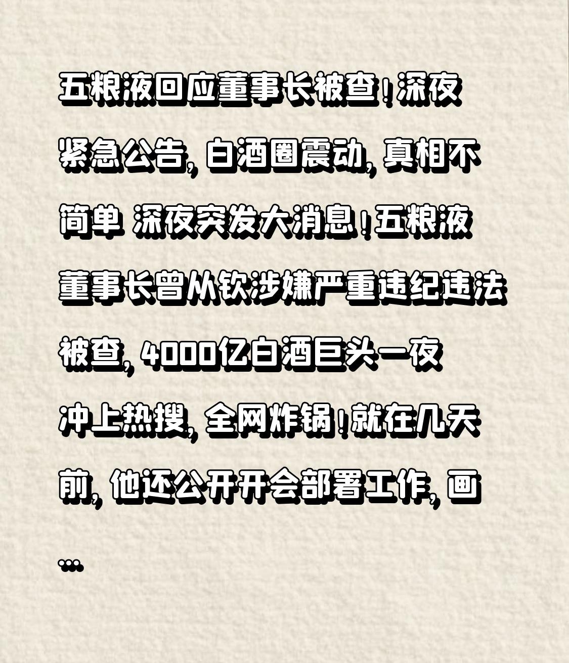 五粮液回应董事长被查!深夜紧急公告,白酒圈震动,真相不简单 深夜突发大消息!
