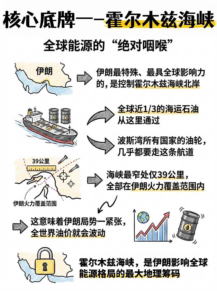 伊朗有什么?对我们有什么影响?核心底牌一:霍尔木兹海峡核心底牌二:超级能源地库核
