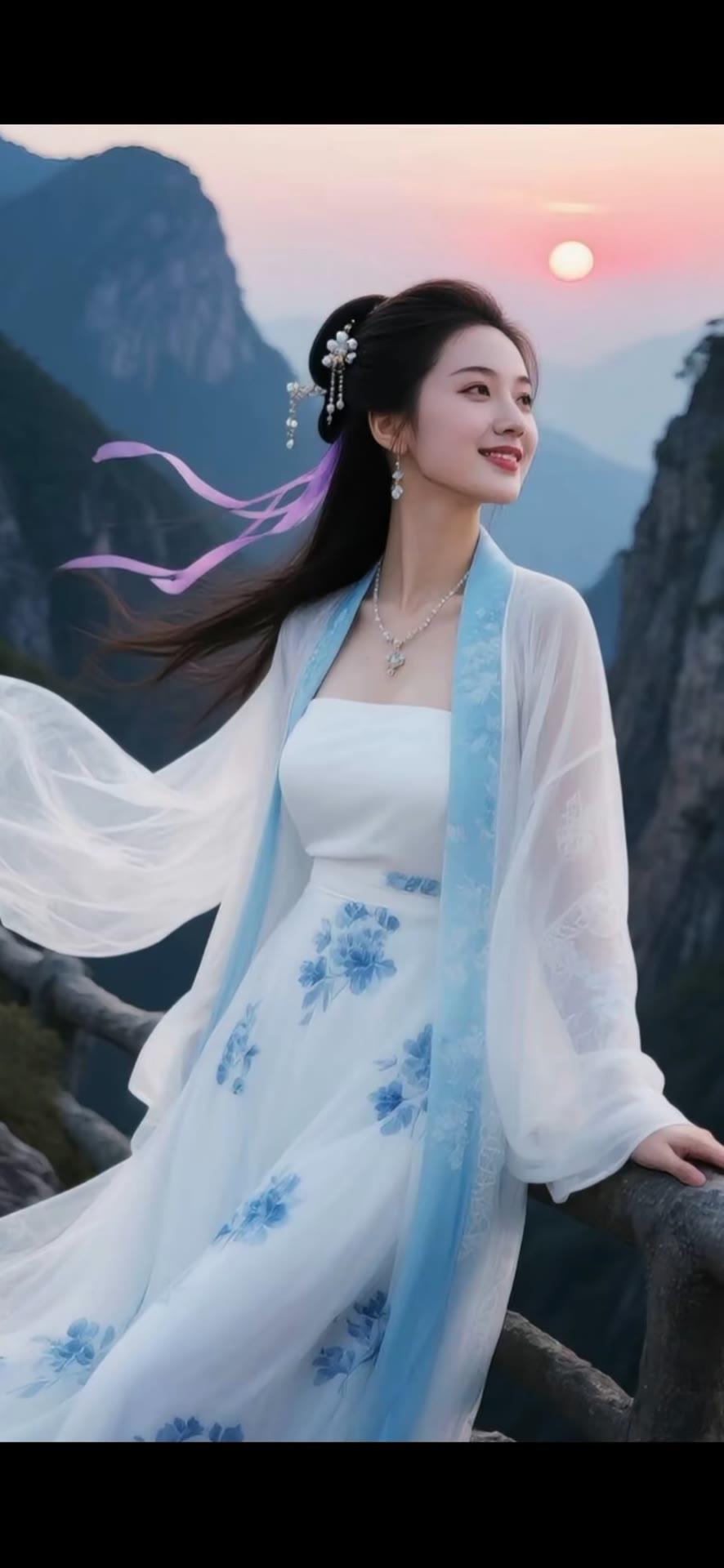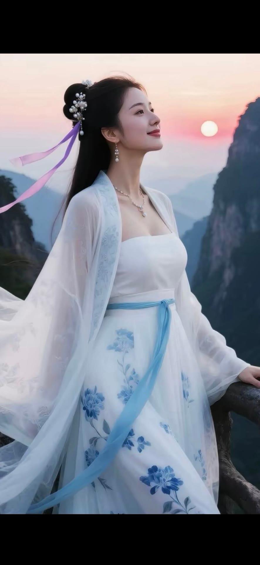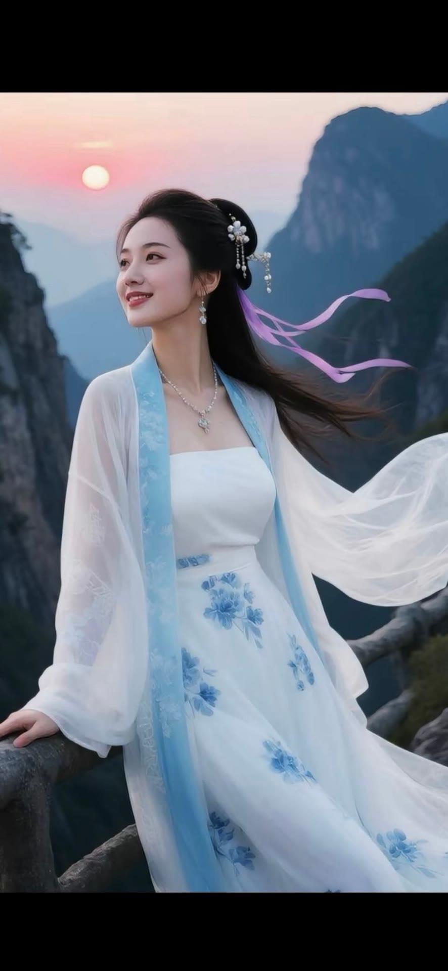 仙气飘飘的古风少女,置身于山水之间,宛如画中人。