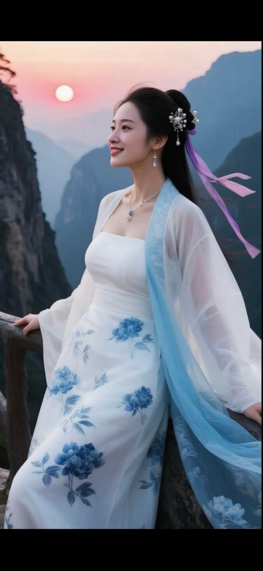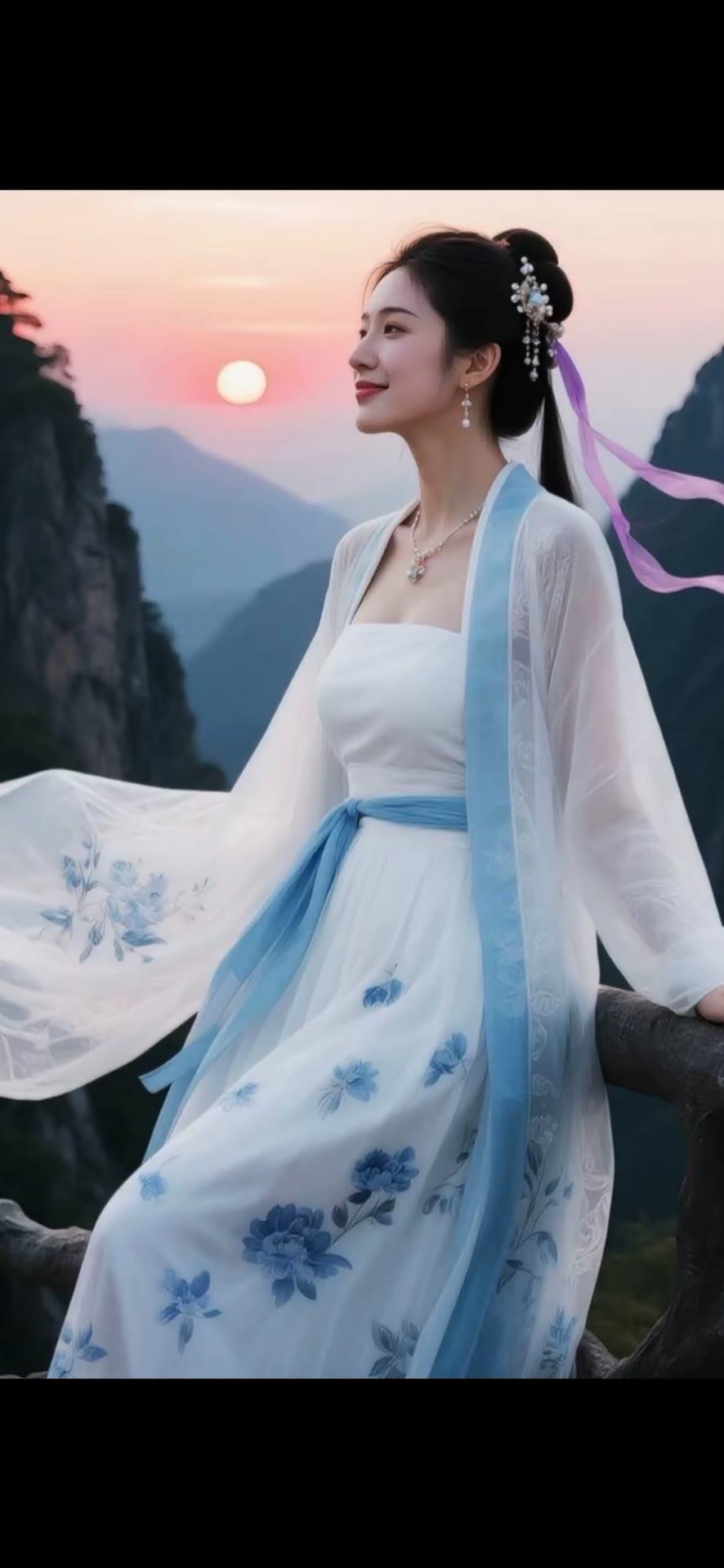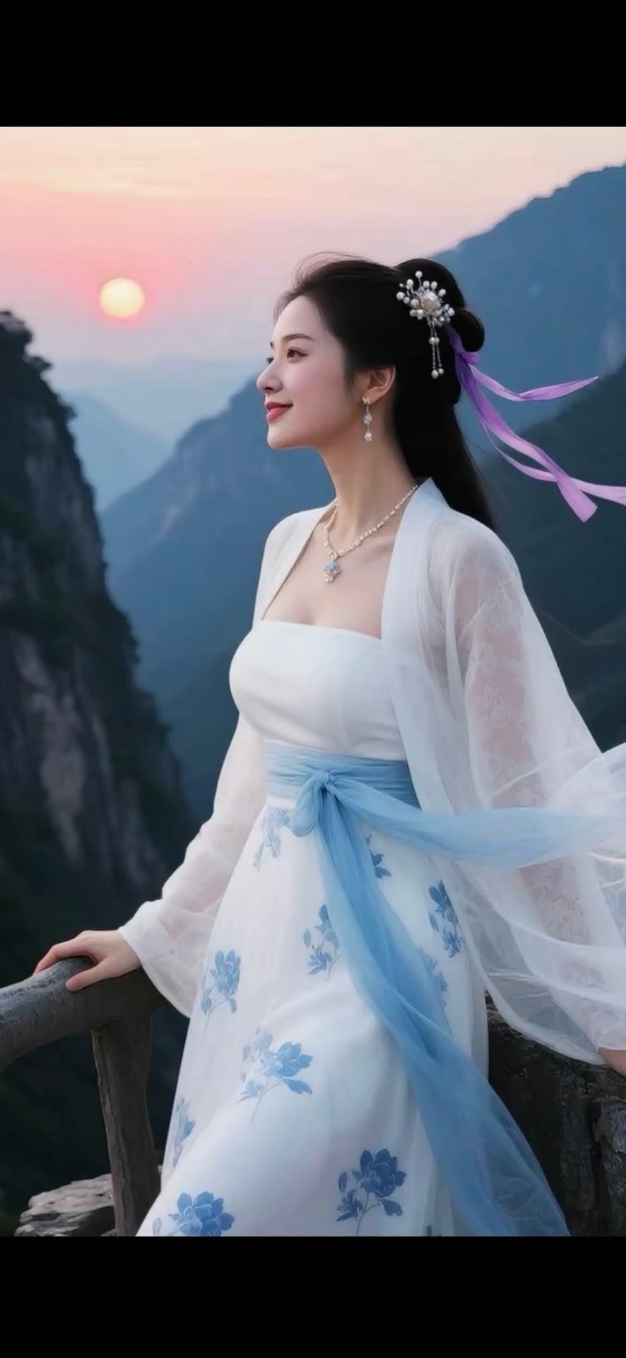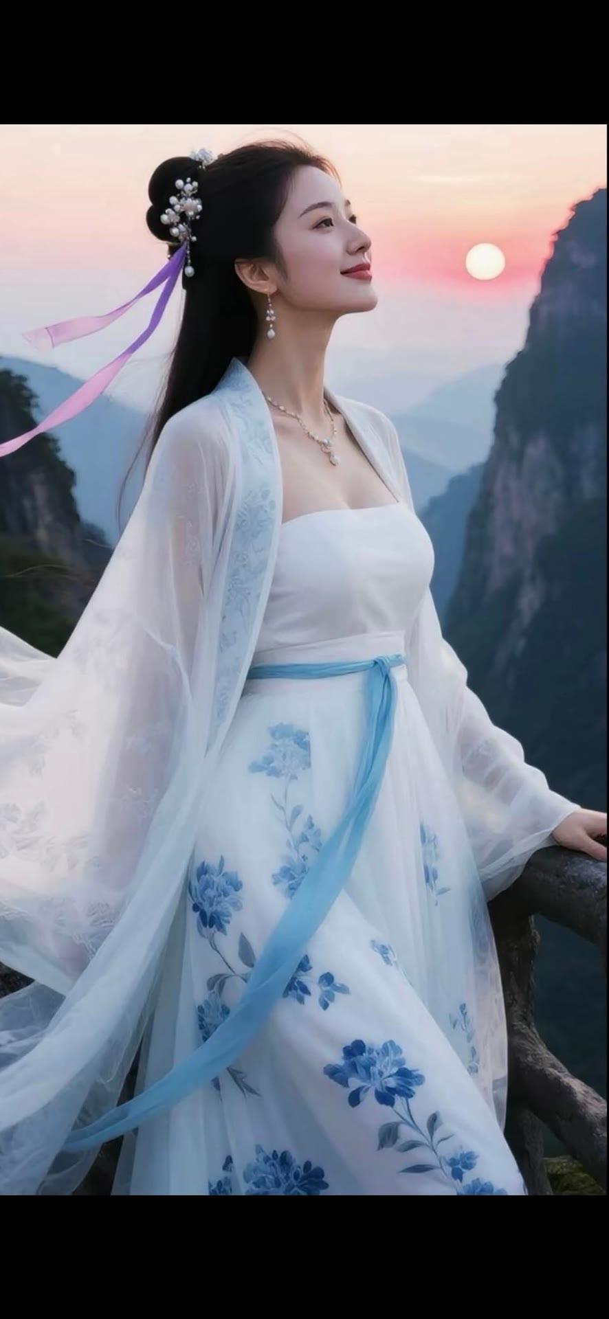 仙气飘飘的古风少女,置身于山水之间,宛如画中人。
