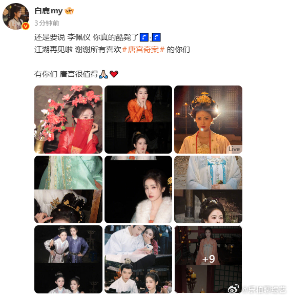 白鹿李佩仪江湖再见 《唐宫奇案》最后的大结局了,白鹿告别李佩仪了,非常的不舍得