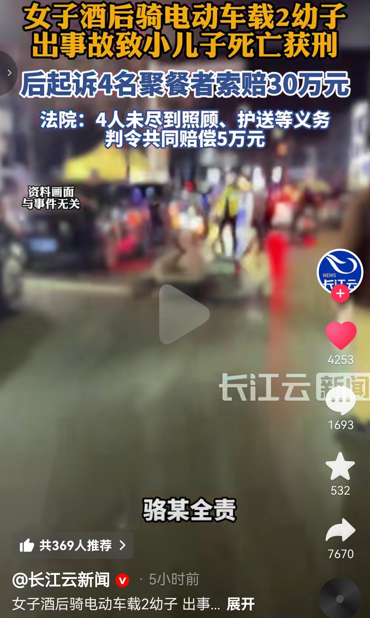 太痛心了!云南宜良县的骆女士怎么也想不到,一场和亲戚朋友的聚餐,一杯接一杯的酒,一次抱着侥幸的骑行,会让她永远失去年仅几岁的小儿子,也让自己从母亲变成了阶下囚,最后还要和昔日酒友对簿公堂。 事情是这样的,那天晚上,骆女士和4名亲友围坐一桌,推杯换盏间,渐渐有点醉意了。 聚餐结束时,已经到了凌晨,她醉酒后,明知两个年幼的儿子还在自己的身边,她还是拧动了车把。 夜色沉沉,酒精模糊了她的视线,也麻痹了她的判断力。 途中意外突发,电动车失控出事,小儿子没能扛住伤痛,永远离开了这个世界。 事故发生后,交警认定了责任划分,骆女士因违反交通安全法规致人死亡,应承担主要责任。 而等待她的,是交通肇事罪的刑事处罚,被判处有期徒刑一年,缓刑一年,是牢狱之灾,更是余生都无法释怀的丧子之痛。 可是,事情到这里并没有到此结束。 服刑结束之后,骆女士将当天和她一起聚餐的4名酒友告上法庭,索赔30余万元。 她认为,这4个人在聚餐时没有劝阻她喝酒,散场后也没尽到照顾、护送的义务,才导致了悲剧的发生。 这个诉求,瞬间引发了轩然大波。 有的网友认为骆女士“甩锅”,自己酒驾全责,凭什么怪别人? 也有人共情她的遭遇,觉得酒友确实该尽到提醒义务,不能喝完酒就让带着孩子的人独自离开。 直到近日,云南省宜良县人民法院公布了一审判决书,才让这场争论有了定论:法院认为,4名被告未尽到全面的照顾、护送及帮助等安全注意义务,存在轻微过错,应承担相应赔偿责任,酌情判令4人共同赔偿骆女士5万元。 要我说5万元,对于一条鲜活的小生命来说,太轻了。可对于这场悲剧里的每个人来说,这5万元都是一记沉重的警钟。 首先,最该警醒的,是作为监护人的骆女士,也是我们每一个普通人。 “酒驾”这两个字,我们听了无数遍,可总有人觉得“就骑个电动车,没事,离家不远,开慢点就行,喝的不多,脑子清醒”。 可现实从来不会给侥幸留余地。尤其是车上还载着孩子的时候,父母的一次疏忽,就是孩子的一生。 骆女士失去了孩子,自己也付出了代驾,这份代价,惨痛到无法用语言形容。她的悔恨,我们能想象,可逝去的孩子,再也回不来了。 这也提醒我们,为人父母,责任二字重千钧。酒桌之上,别让面子盖过理智。出行之时,别让侥幸战胜规则。保护孩子,是我们这辈子最重要的功课。 其次,这起案件也给所有“酒友”提了个醒:聚餐喝酒,从来不是“喝完就散”那么简单。 有人说,成年人要为自己的行为负责,别人没义务管你喝不喝酒、走不走。话虽没错,但人情社会里,朋友相聚,多一份关心,就可能少一场悲剧。 当天聚餐的4名酒友,或许只是觉得骆女士“平时挺能喝”“应该没事”,或许是碍于情面没好意思硬拦,又或许是散场时匆匆忙忙忘了叮嘱。 可就是这一点点“疏忽”,成了他们需要承担赔偿责任的理由,也成了他们心里永远的疙瘩。 法院判的5万元,不是为了让谁“背锅”,而是在明确一个道理:成年人的社交里,要有边界感,更要有责任感。 看到朋友喝多了,尤其是对方还要开车、骑车,甚至带着孩子时,别再随口说“慢点走”,而是要真的拦下他,帮他找代驾,送他回家,或者联系他的家人。 这不是多管闲事,这是在救一个人,护一个家。 这场悲剧,没有真正的赢家。 骆女士失去了孩子,背负着罪名和愧疚过一生。4名酒友要承担赔偿,还要面对内心的谴责。而那个年幼的孩子,还没来得及看遍世间美好,就匆匆退场。 我们常说,“酒逢知己千杯少”,但别让酒杯,变成悲剧的导火索。 酒桌之上,别逞强。出行之时,守规则。亲友之间,多担当。 生命只有一次,孩子的安全经不起任何试探,我们的侥幸,从来赌不过意外。 大家觉得呢?欢迎大家评论区讨论留言。 (信息来源:长江云新闻)