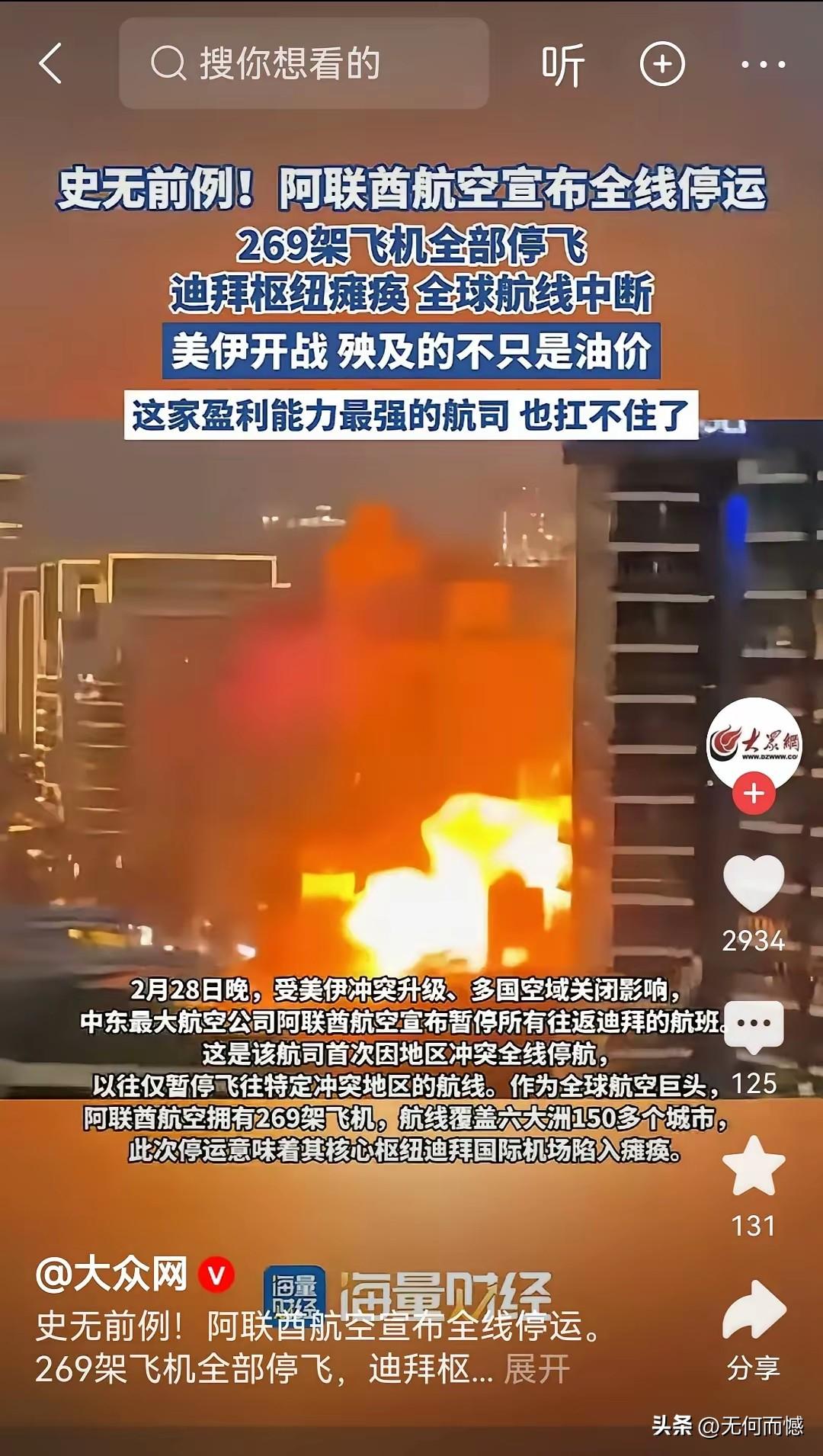 阿联酋这次也遭殃了,美国和以色列袭击了伊朗,伊朗就报复性袭击美国在阿联酋的军事基地,阿联酋航空宣布全面停运,269架飞机全部停飞,拜迪枢纽瘫痪,全球航线中断,拜迪这座旅游城市,也变得不安全了,旅游业受到了严重的影响,其他相关产业也受到了影响!