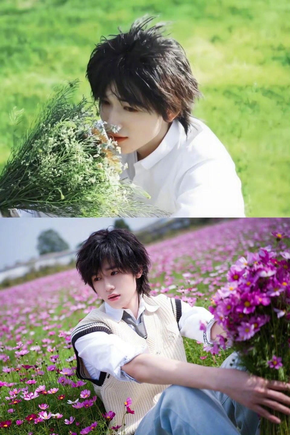 宋亚轩海胆头等比例长大的小宋老师,抱着花坐在花田的样子,少年感直接溢出屏幕!海胆头发型配上干净的白衬衫,是春天里最治愈的风景没错了!谁能不爱这样的清爽少年!
