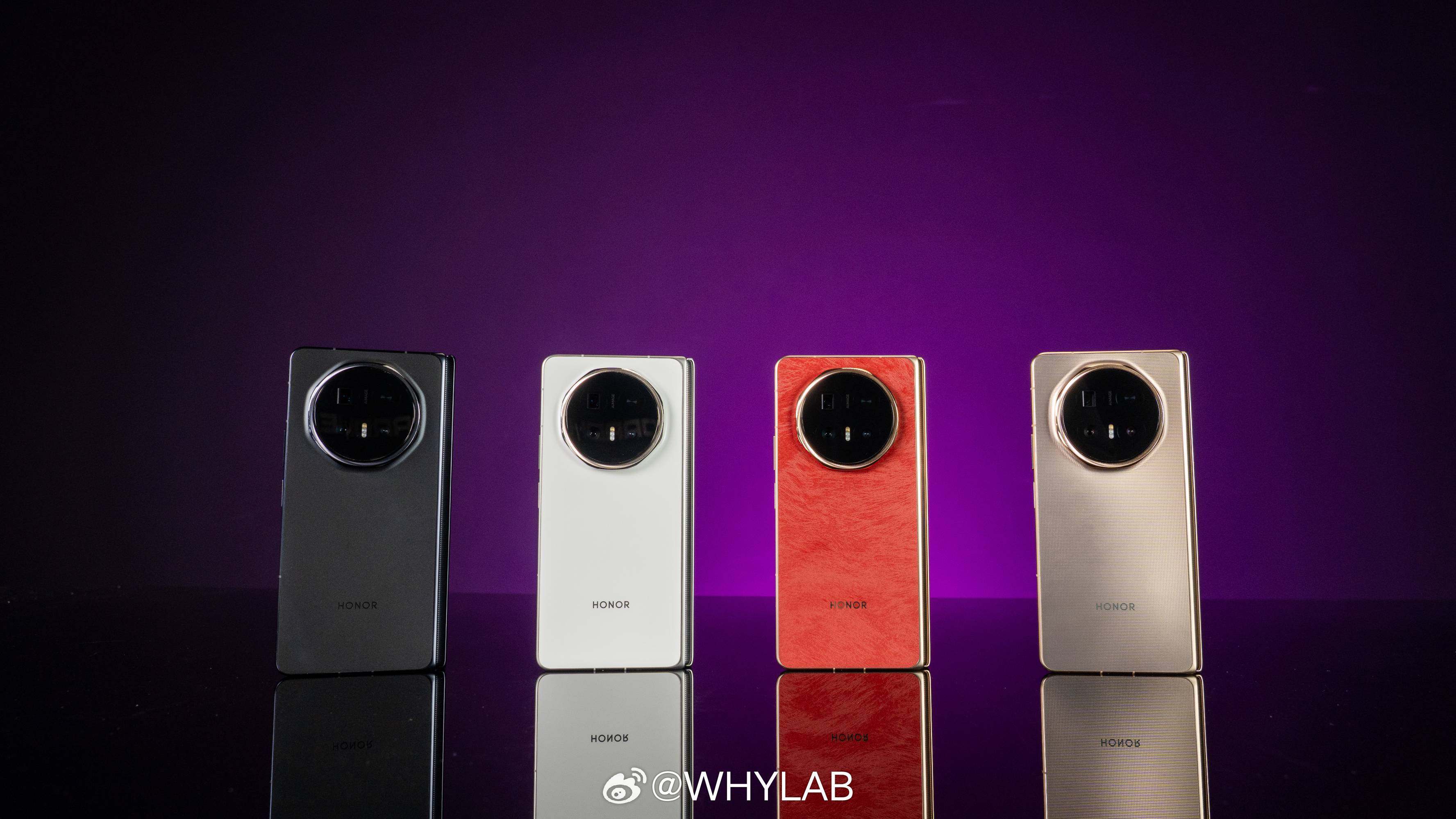 WHYLAB图赏 荣耀 Magic V6 真机来了,一共四款配色,赤兔红、旭日金、雪域白、绒黑色,我觉得这次赤兔红最好看,独占精雕轴盖纹理,你们更喜欢哪款配色?