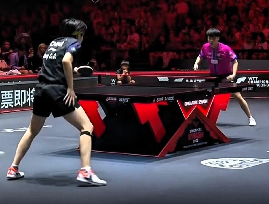 新加坡大满贯男单决赛: 林昀儒挑战王楚钦 首局,开场林昀儒手紧,连丢5分。 王楚