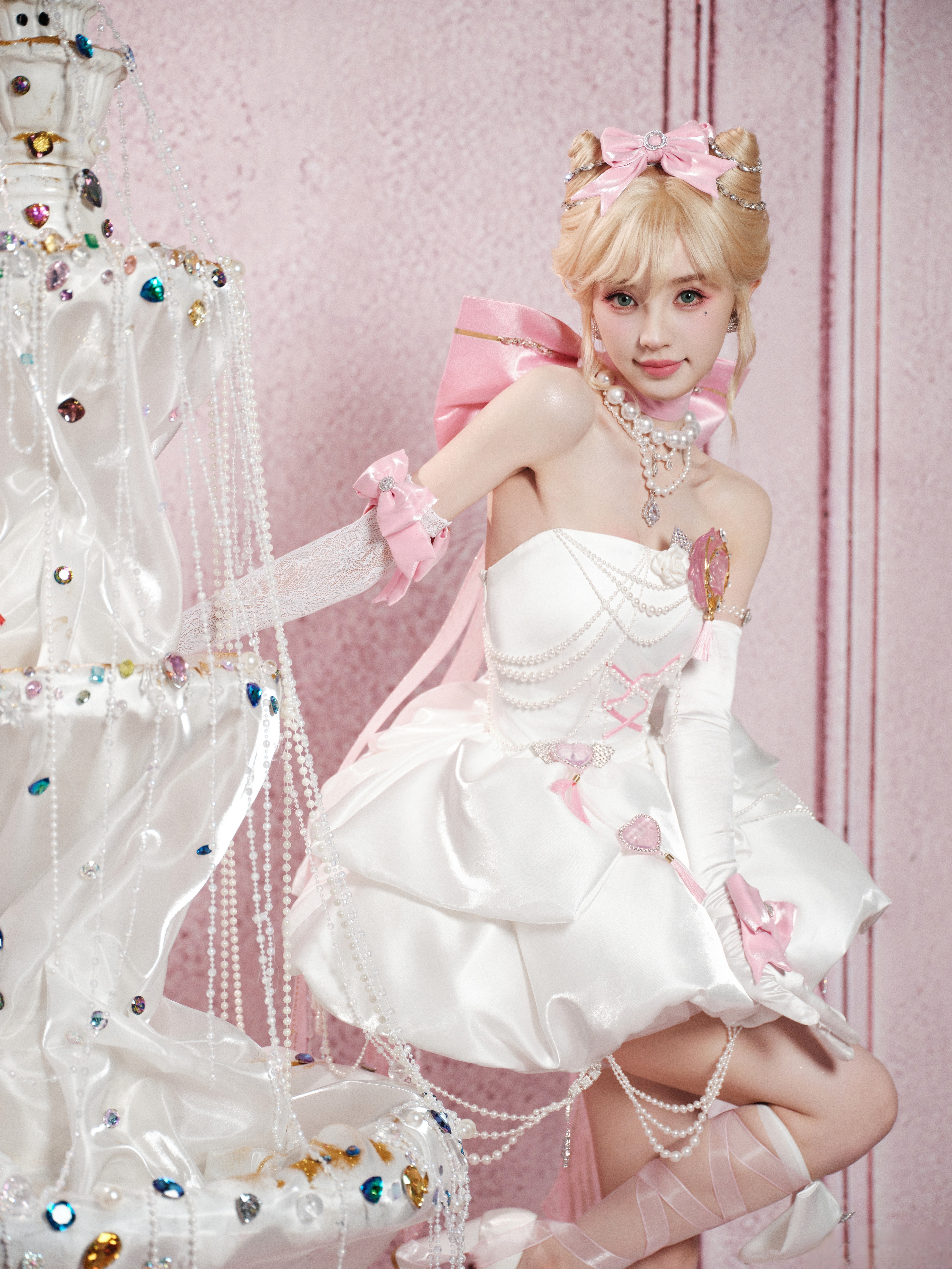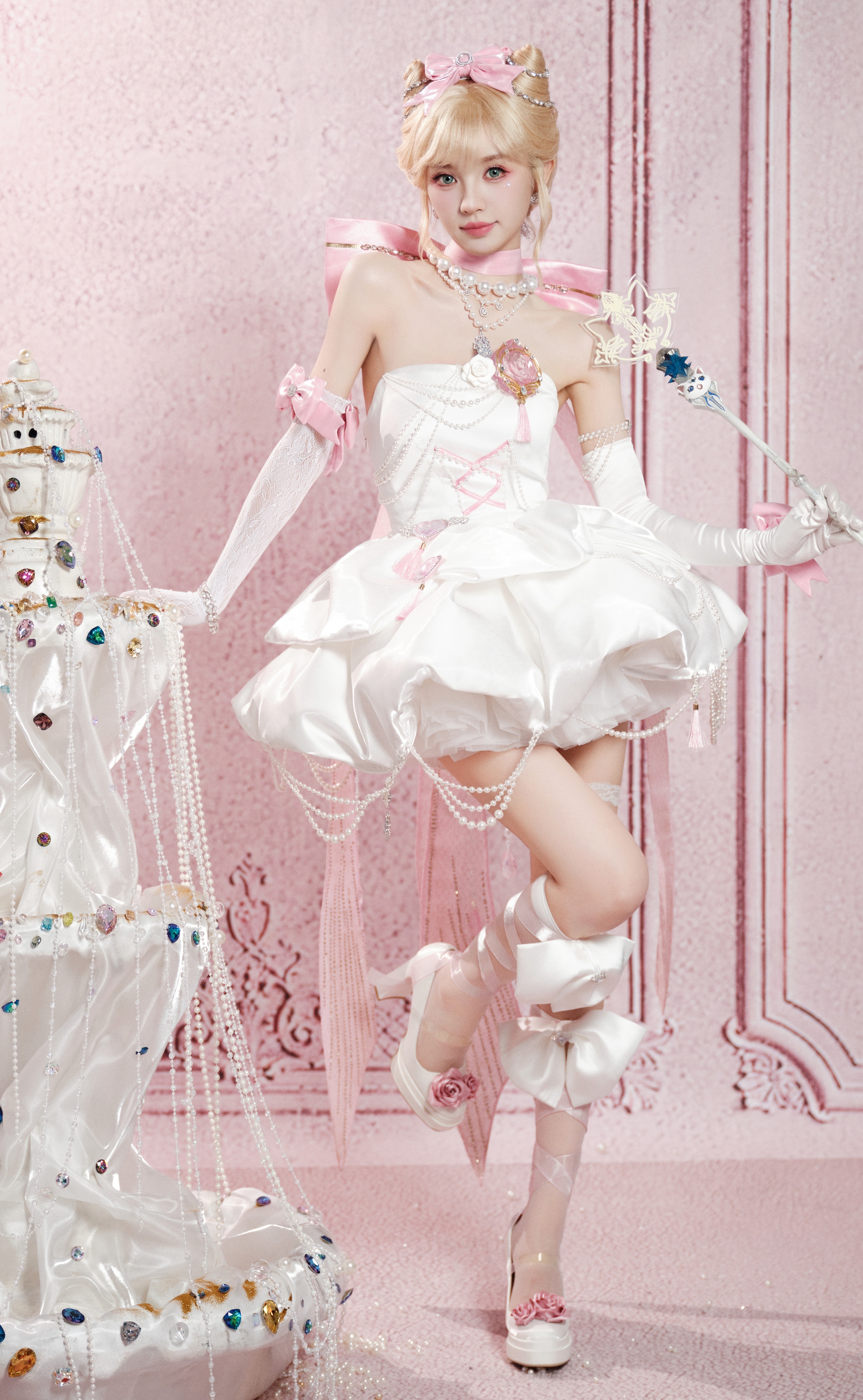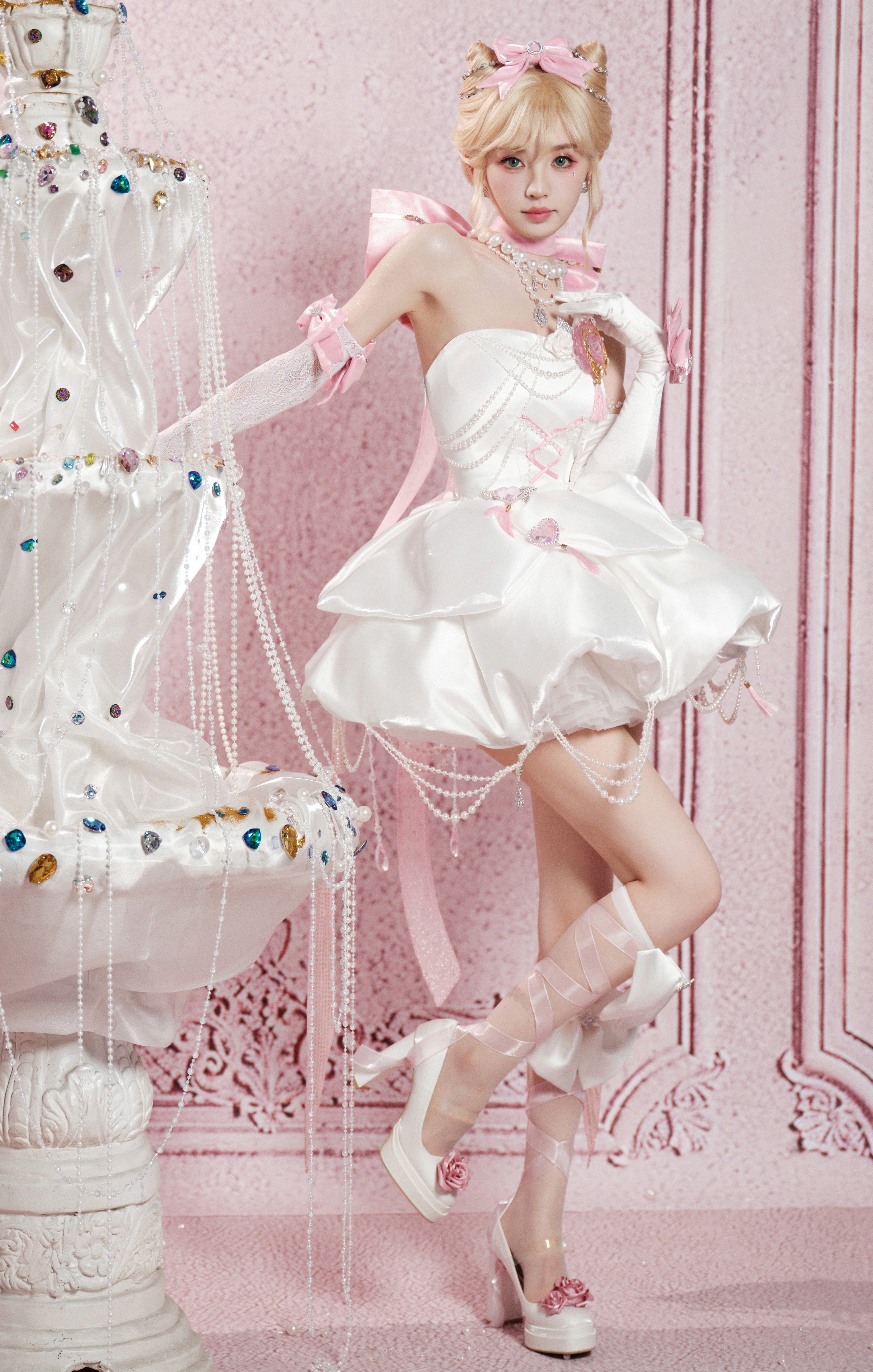 张凌赫田曦薇从见面到合作用了386天田曦薇 小田同学金发小野猫 白色裹胸短裙 白蕾丝攻速手套 大长腿白色绑带高跟鞋
