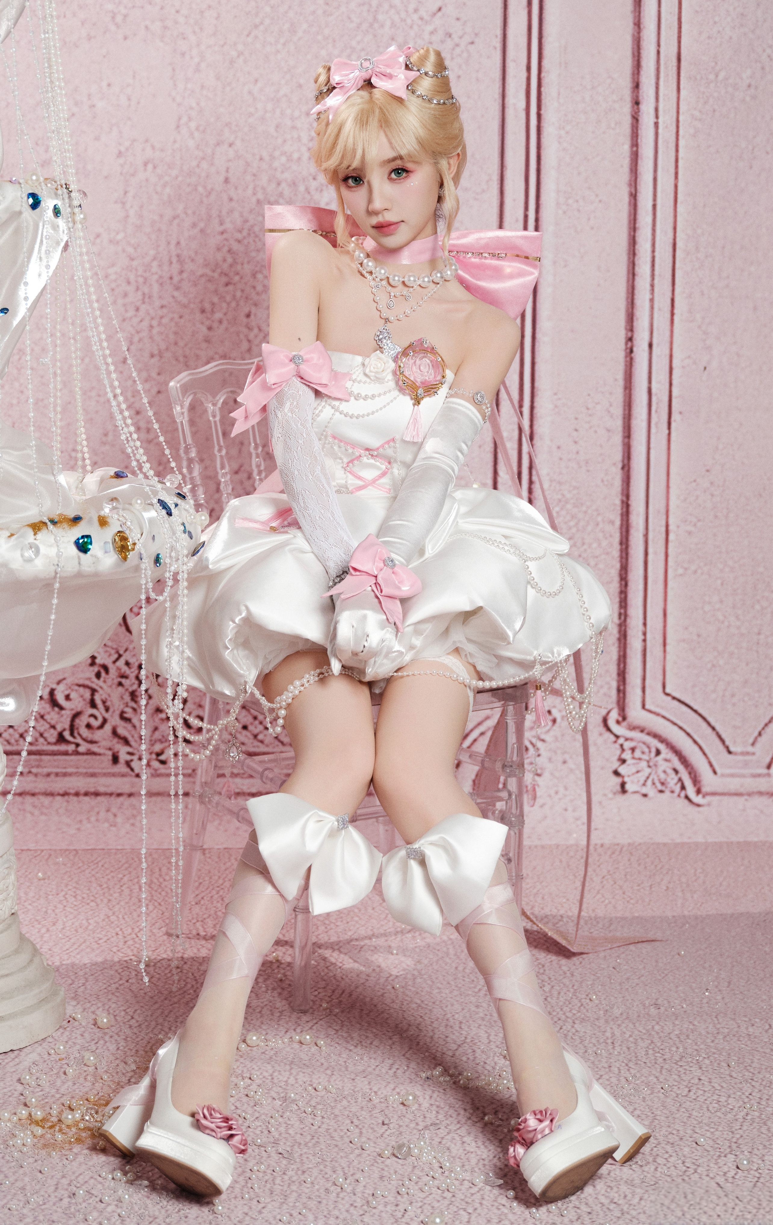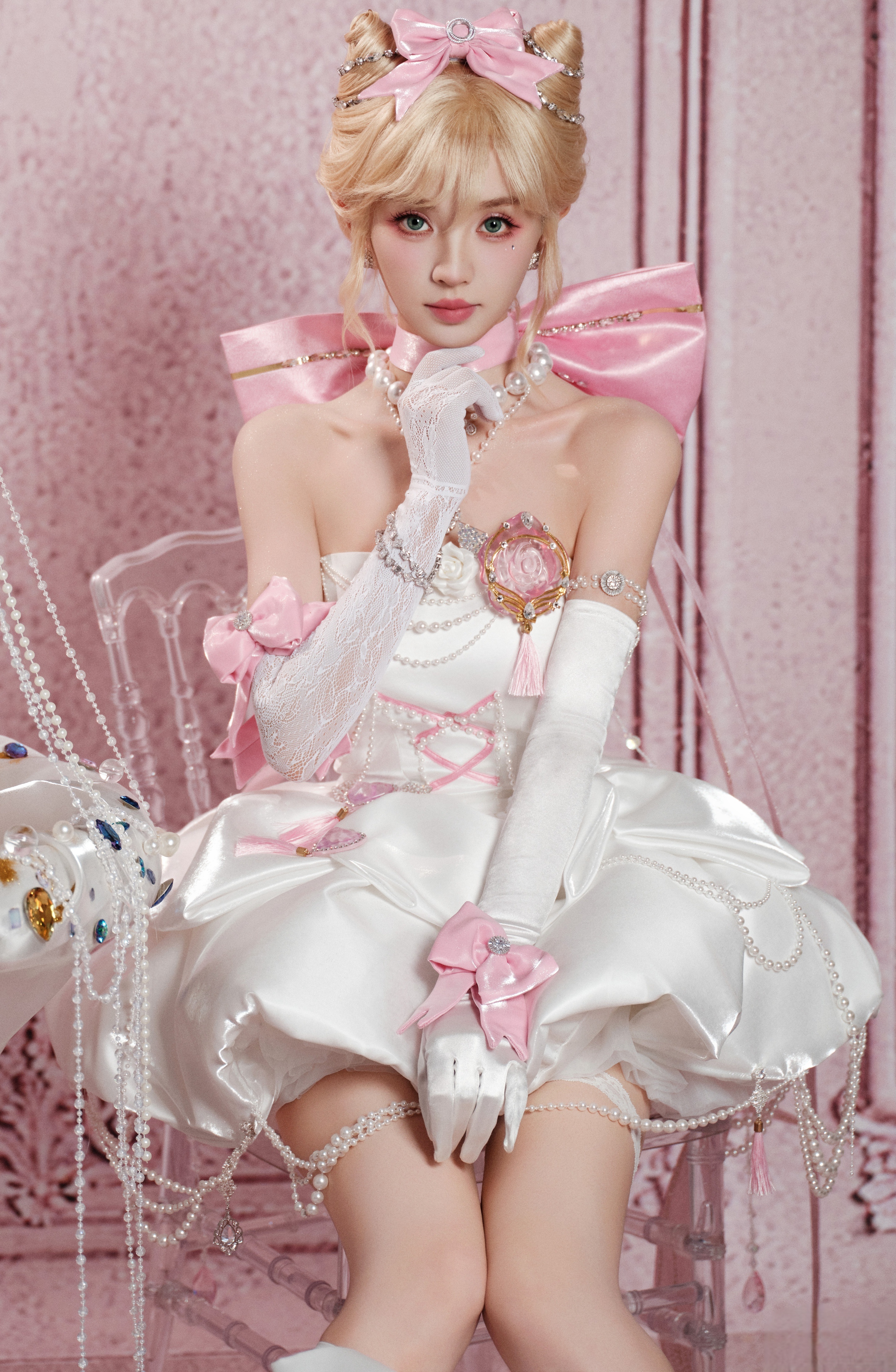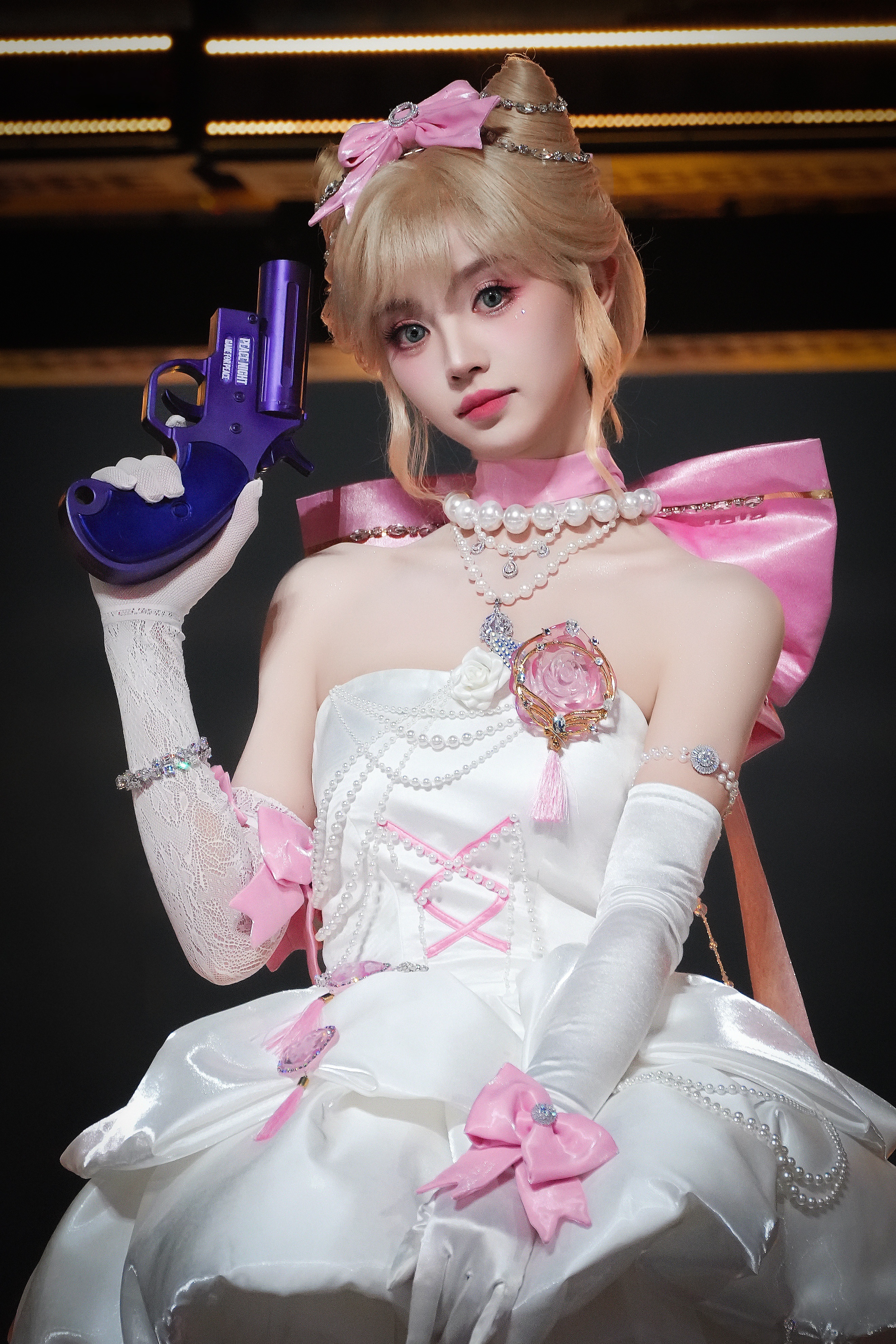 张凌赫田曦薇从见面到合作用了386天田曦薇 小田同学金发小野猫 白色裹胸短裙 白蕾丝攻速手套 大长腿白色绑带高跟鞋
