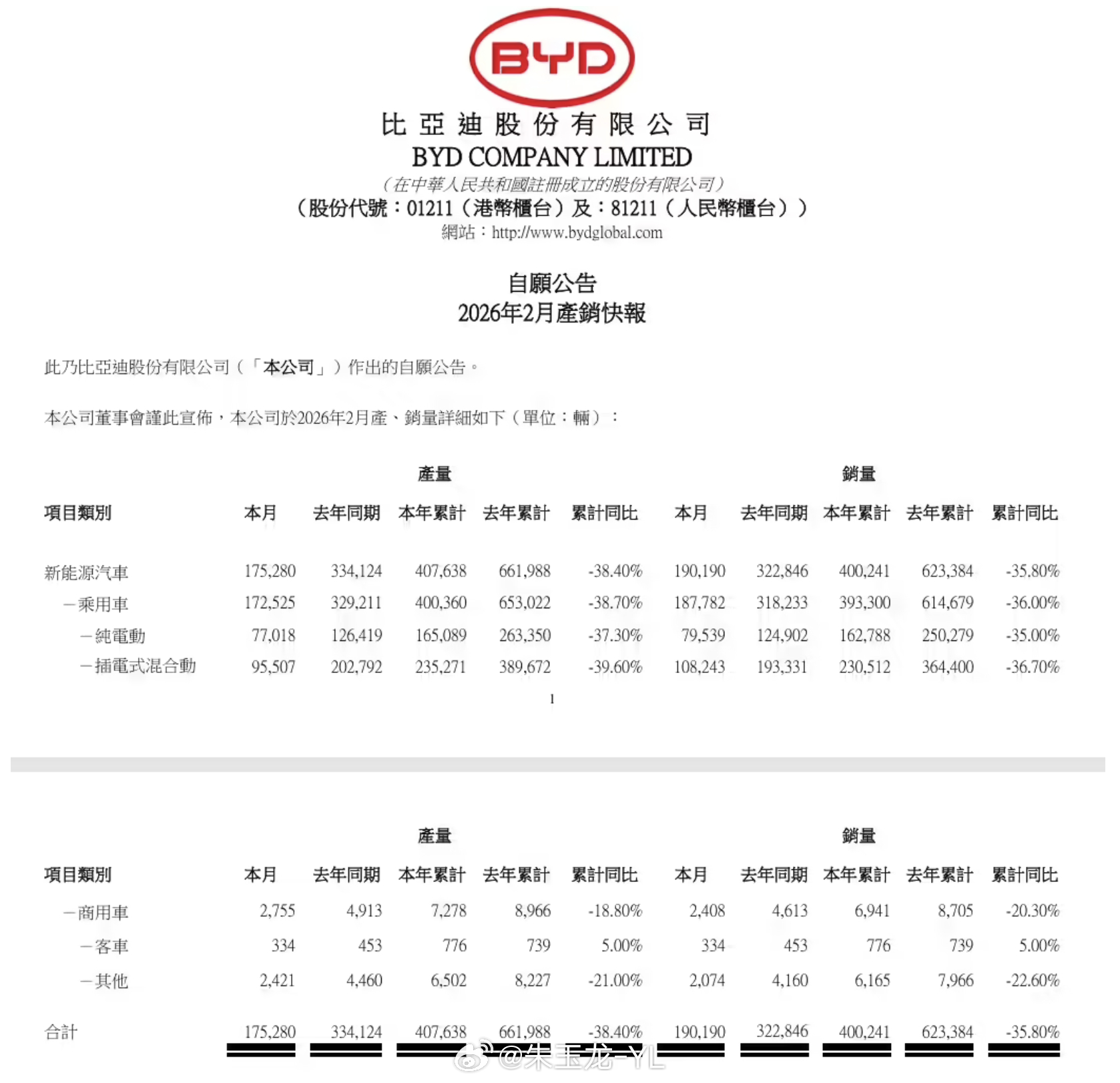 比亚迪:月销19万台,出口撑起半边天乘用车18.8万台,纯电7.95万台、插混10.8万台,出口10.06万台,国内实际消化只有约9万台。全球化走得很坚定