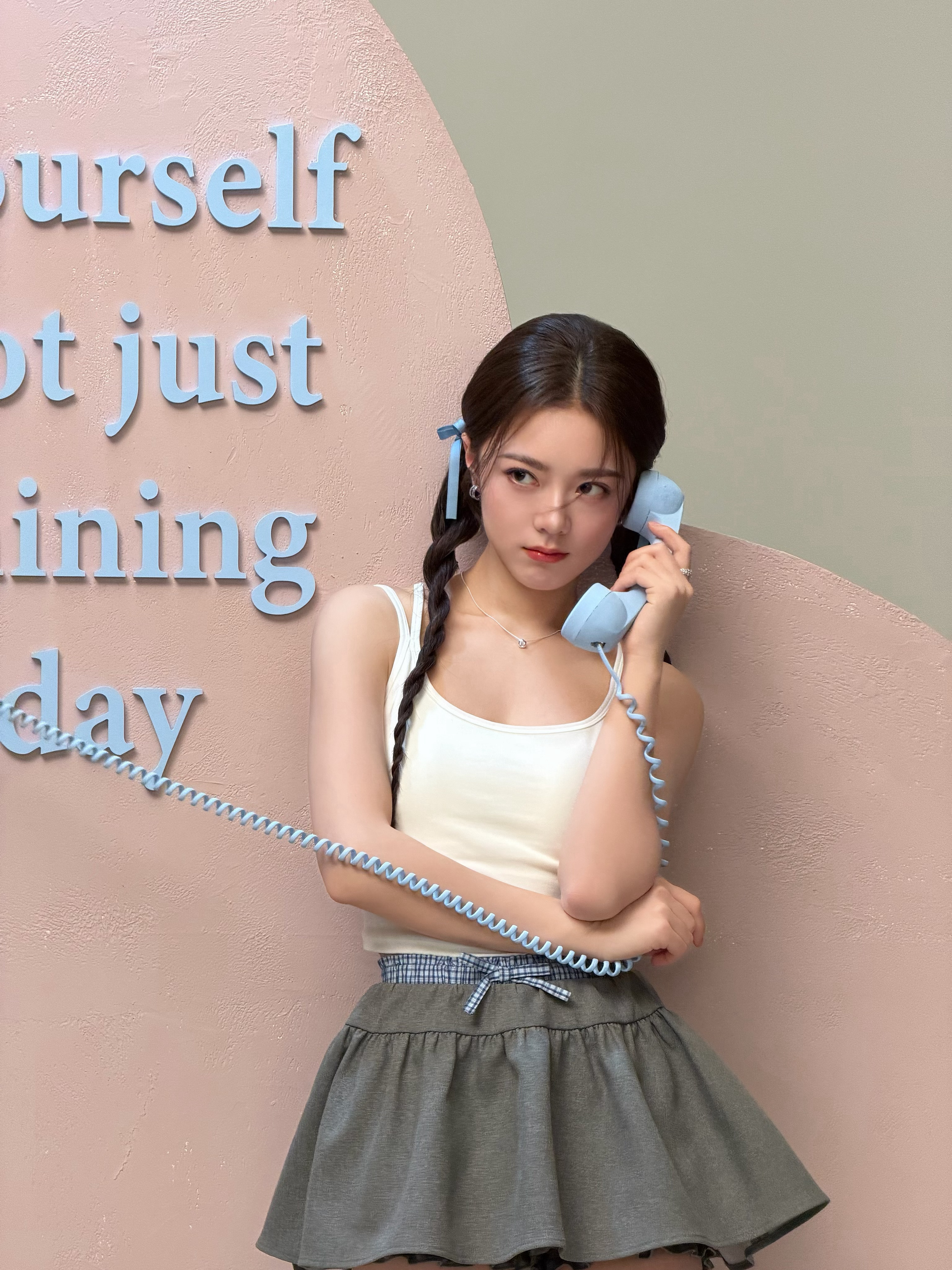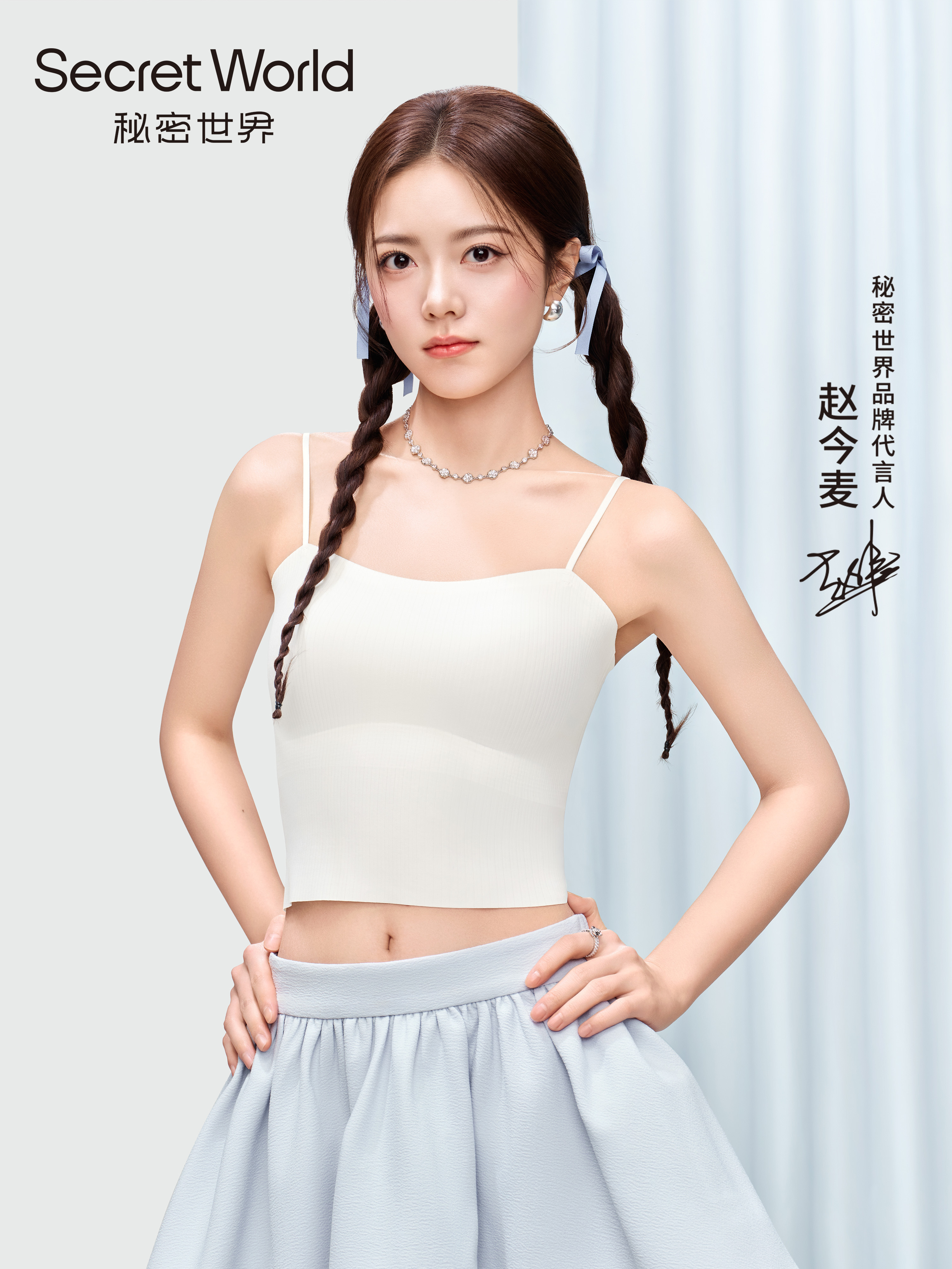 浅蓝挂脖针织衫+垂坠纱裙,陈瑶这组写真把清冷感和少女感平衡得刚刚好[比心