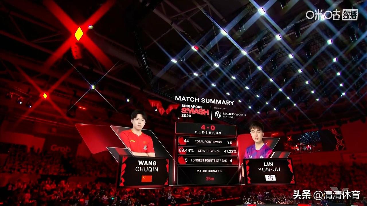 王楚钦35分钟速胜夺冠!4-0横扫,看似轻松实则步步惊心 WTT新加坡大满贯男单决赛,王楚钦以4-0横扫对手夺冠,全场仅用35分钟。比分看似一边倒,过程却充满波折,对手多次追分施压,每一局都打得胶着紧张。 面对压力,王楚钦心态沉稳、节奏清晰,关键分毫不手软,展现出极强的比赛掌控力。从开局领先到逆风追分,他始终稳住局面,用实力拿下胜利。 这场胜利不仅是技术的碾压,更是心态与成熟度的蜕变。王楚钦扛住重担,强势捍卫国乒荣耀,真正成长为值得信赖的国乒核心!