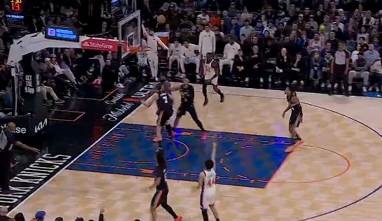 马刺三分命中分差来到12分,沙梅特接球三分迅速还以颜色
