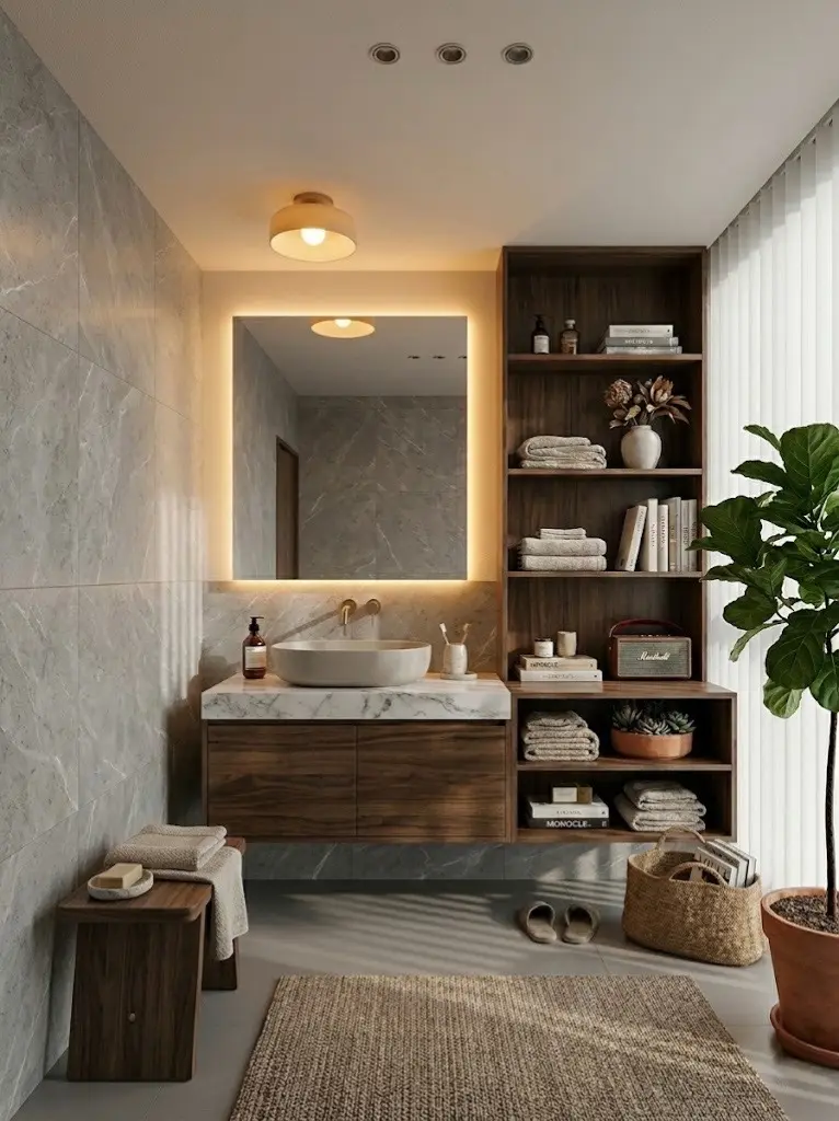 从主卧的皮革床头到卫浴空间的极简悬挑台,每一处细节都藏着对品质的考究。点缀一株苍翠的琴叶榕,为克制的硬装注入生机与绿意。🍃