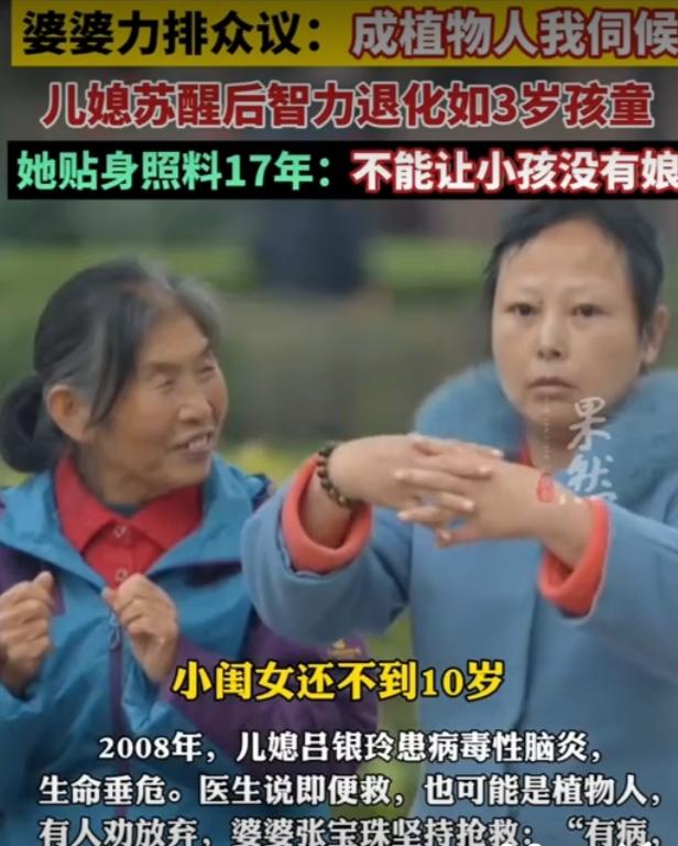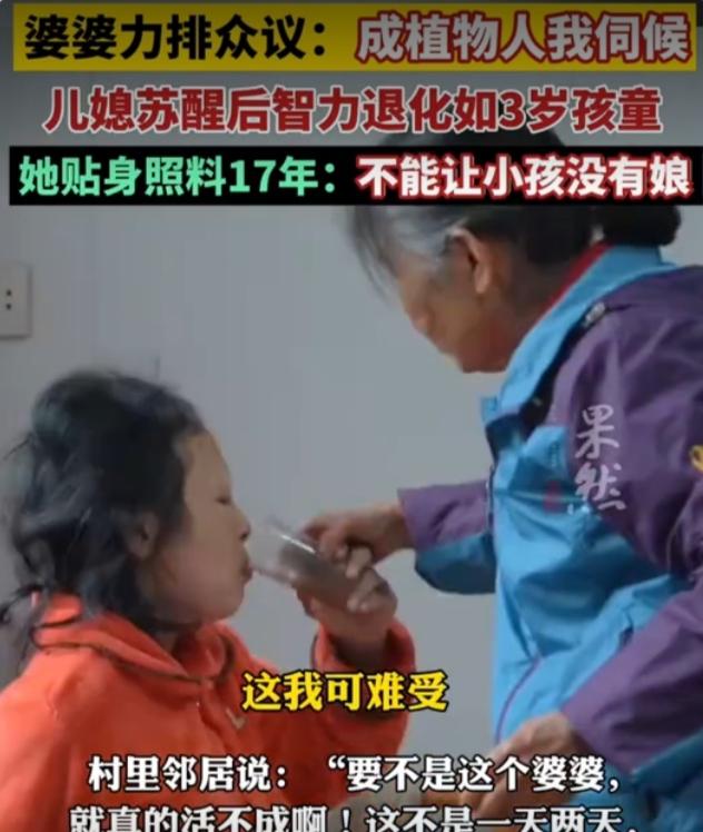 河南婆婆因为一句承诺,照顾床上儿媳妇17年!丈夫7年不买新衣:钱没了可以挣,只要人在,就是一个完整的家。 很多人说,婆媳是天生的冤家,可在这个河南家庭里,婆婆用17年,把婆媳情活成了母女情。当年儿媳突发重病,医生直言救回也大概率是植物人,亲友纷纷劝放弃,怕人财两空、一辈子受累。婆婆却攥着儿媳的手,一句承诺落地:她喊我一声妈,就是我闺女,我守到底。 没人知道这17年、六千多个日夜有多难。喂饭、擦身、翻身、康复、哄情绪,儿媳智力像三岁孩子,闹脾气、不认人、甚至动手,婆婆从没一句怨言,耐着性子一遍遍教她说话、认人、慢慢抬手迈步。从卧床不起到能简单交流、能抬手画画,是老人用青春与耐心,一点点把生命拉了回来。 丈夫更让人心疼。为凑医药费,卖房卖车,一家挤在小出租屋;为省钱,整整7年没买过一件新衣,衣服磨破领口、棉袄结块,裤子是亲友孩子穿剩的。他白天开出租跑遍大街小巷,深夜回家再搭手照料,再苦再累只说:她是娃的妈,人在,家就在。 网上总有人计较婆媳矛盾、计较付出得失、计较值不值得。可这家人用最朴素的坚守告诉我们:家人不是算账,是不离不弃;幸福不是有钱,是有人等、有人守、有人不放弃。 有人问婆婆后悔吗?她笑着说:家完整,比啥都强。有人问丈夫苦不苦?他淡淡一句:钱没了能挣,人没了,家就散了。 这世上最珍贵的,从来不是荣华富贵,而是困境里不松手、平淡里不辜负。看完你泪目了吗?你见过最好的婆媳、最好的家人是什么样子?评论区说说吧。通情达理婆婆