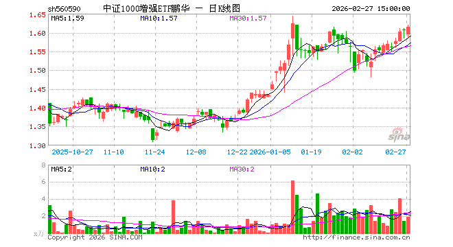 2月27日,中证1000增强ETF鹏华(560590)涨0.62%,成交额311.36万元。当日份额减少300.00万份,最新份额为1671.00万份,近20个交易日份额增加0.00份。最新资产净值计算值为2713.04万元。