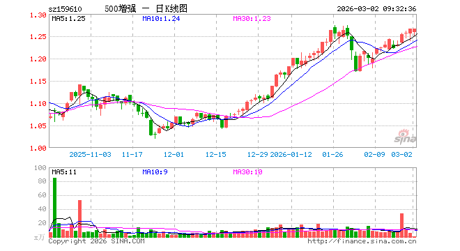 500ETF增强(159610)业绩比较基准为中证500指数收益率,管理人为景顺长城基金管理有限公司,基金经理为张晓南、郭琳,成立(2021-12-13)以来回报为26.55%,近一个月回报为0.62%。