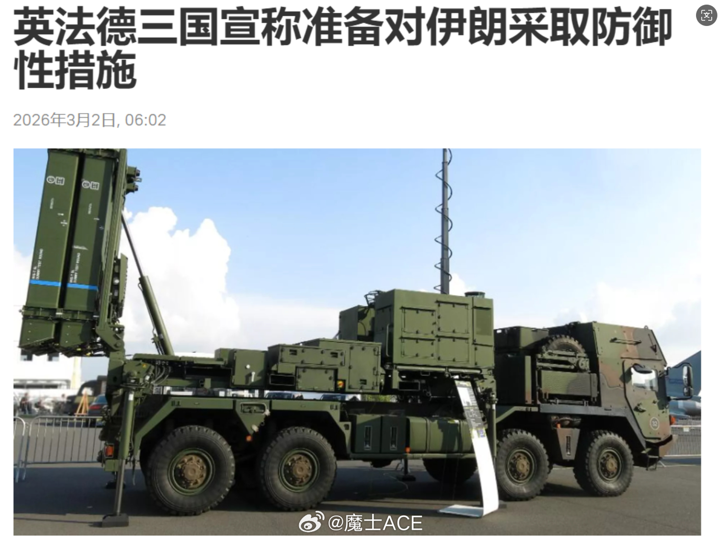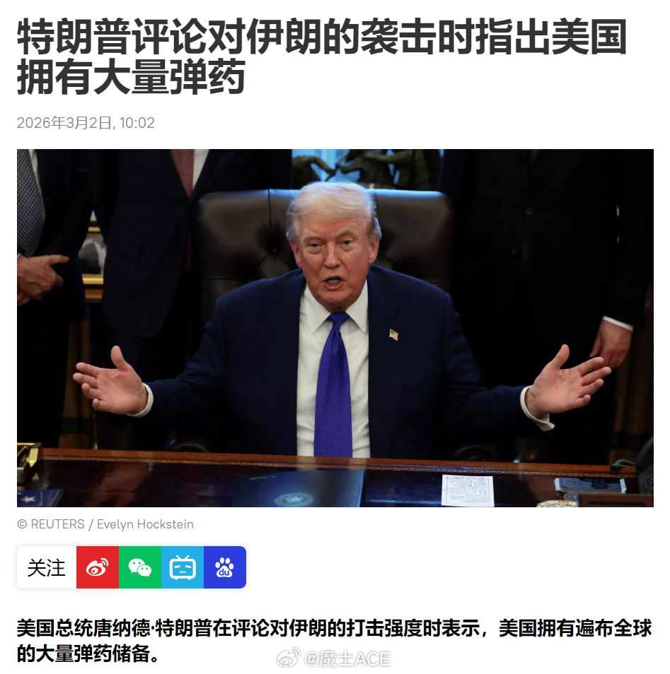 英法德三国联合声明中东全面战争一触即发以军超100架战机空袭伊朗注意,特朗普要没弹药了!不是说马上没了,至少库存已经少于它后续行动的预定值了。现在已经太了解这厮了,虚张声势它是第一名。越是已经快无了,越是要嘴上喊一下自己还满罐子荡荡。如果真的是弹药充足,还需要向英法德求援吗?英法德前几天还在喊反对美以对伊朗的打击,今天突然就宣布,加入对伊朗的防御作战。什么是防御作战,就是防空,但不主动出击轰炸,在基地附近帮着美国防导弹而已。英法德的加入,恰好说明,老美的弹药开始捉襟见肘。也对,老川子本来一开始就以为这是一场和委内瑞拉一样的行动,周六打,周日结束,周一全球资本市场恢复正常。弹药预备本身就没按长期轰炸那样搞。所谓的炸四个星期,都是它的胡诌虚张声势而已。无非就是想显得自己弹药充足,逼迫伊朗尽快投降。总之就是虚张声势~