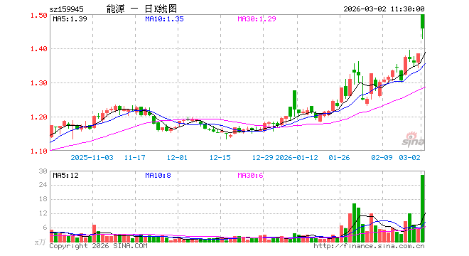 3月2日,截止午间收盘,能源ETF广发(159945)涨5.27%,报1.458元,成交额4090.95万元。能源ETF广发(159945)重仓股方面,中国神华截止午盘涨3.36%,中国石油涨7.55%,中国石化涨3.72%,陕西煤业涨1.90%,中国海油涨10.01%,杰瑞股份涨2.33%,兖矿能源涨4.12%,中煤能源涨6.72%,广汇能源涨8.33%,山西焦煤跌0.54%。