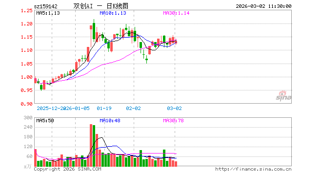 3月2日,截止午间收盘,科创创业人工智能ETF景顺(159142)跌1.22%,报1.133元,成交额3360.13万元。科创创业人工智能ETF景顺(159142)重仓股方面,中际旭创截止午盘涨6.74%,新易盛涨5.16%,澜起科技跌2.05%,寒武纪跌0.00%,金山办公跌2.05%,芯原股份跌1.55%,润泽科技跌3.76%,协创数据跌4.43%,昆仑万维跌4.39%,北京君正跌2.38%。