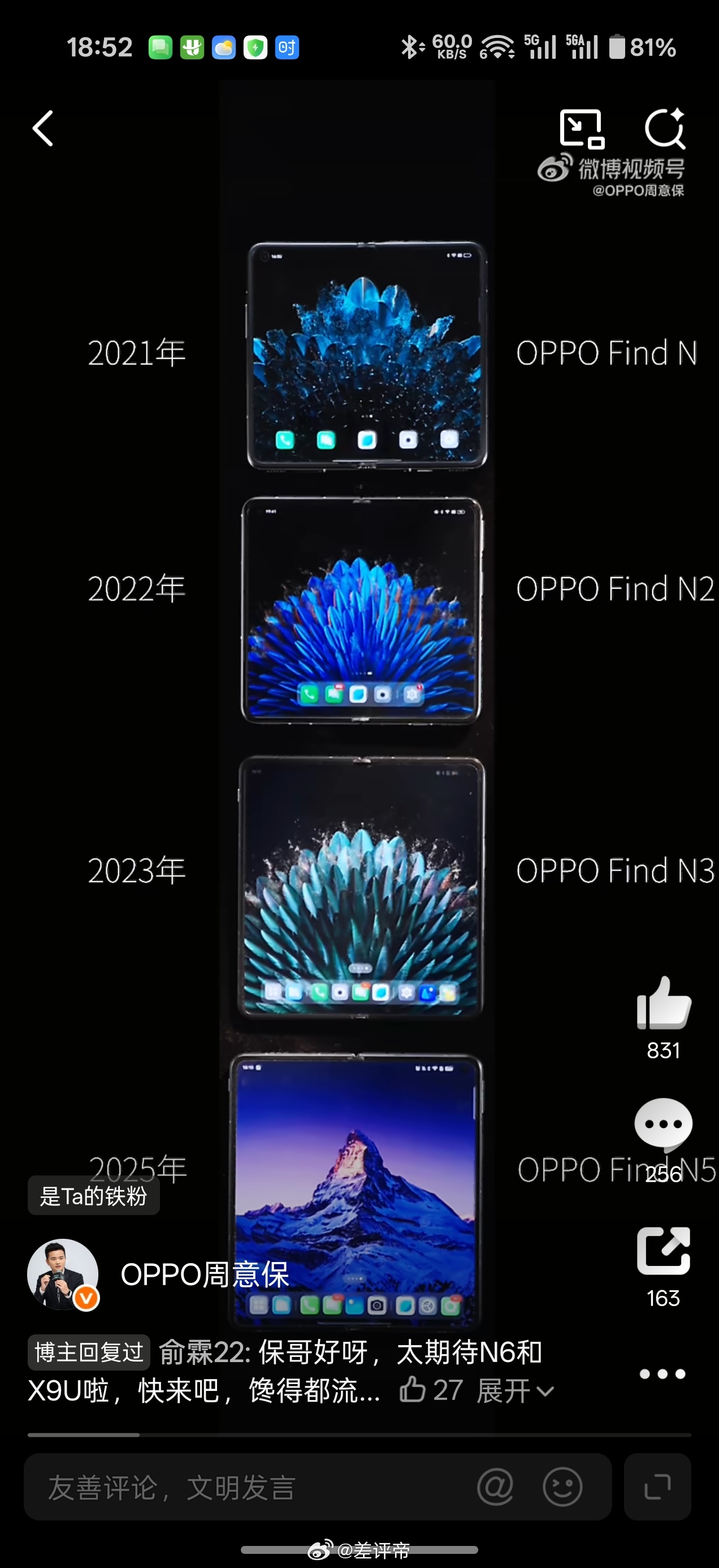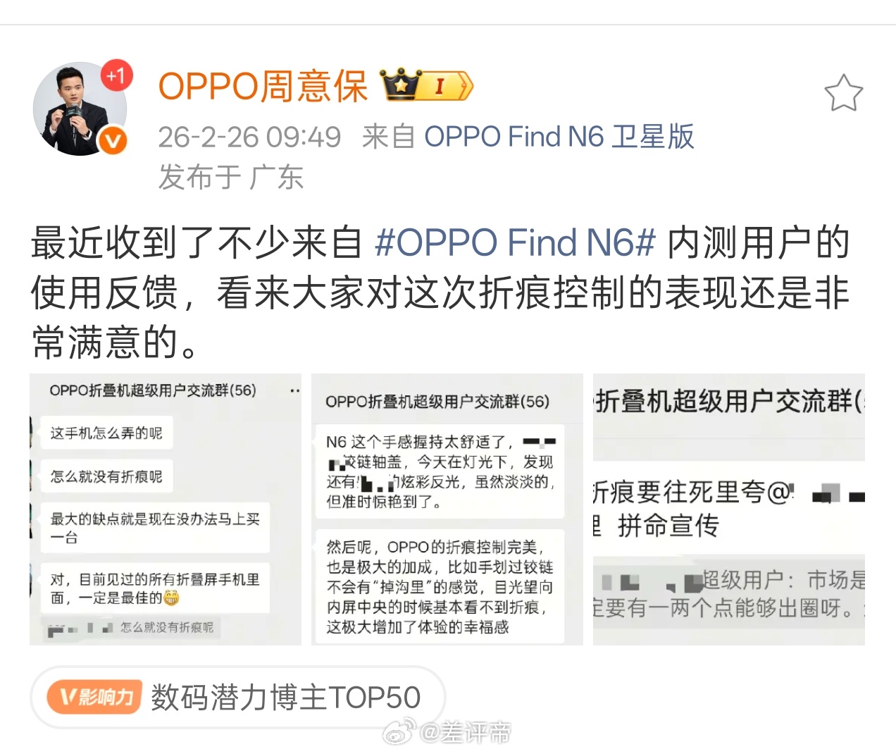 有差友跟我说,蹲了好几天 OPPO Find N6 的预热,真的越看越戳我,终于有人把折叠屏用户最痛的点摸透了!这是实打实用过折叠屏的人,才能说出来的,之前用折叠屏,最膈应的就是那条折痕——花了大屏的钱,不管看剧还是划屏幕,总躲不开那条“沟”,用久了折痕变深更闹心,说真的,这就是折叠屏离完美只差的最后一公里!!!这次Find N6是真的下了硬功夫,内测用户全在夸折痕几乎无感,关键它不是刚出厂的一时平整,是久用也能保持的屏幕顺滑,周意保今天的视频里就展示了使用一个月后依旧无痕的表现这次还有AI笔,很多交互都可以通过笔来操作,这要是折叠屏的究极体了吧那些喊着真做到无折痕就买的人,你们一直等的手机来了!