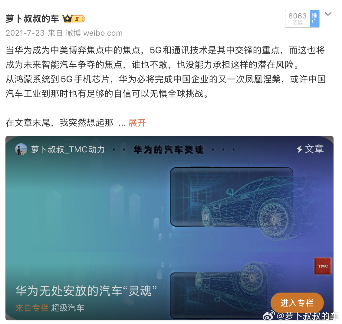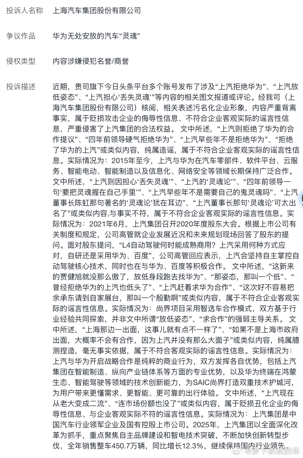 突然收到上汽集团的一个头条投诉,印象中近期没写过上汽集团-华为相关的内容,也不会用这么极端的言辞。查了半天原来是2021年7月发布的内容,内容与上汽集团投诉的极端言论无关。这4年半的时间里,上汽集团都在做什么?作为一家国有车企,如今都变得这么无厘头了? 2021年的内容如下:华为无处安放的汽车“灵魂”