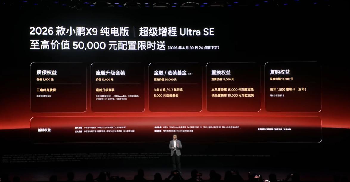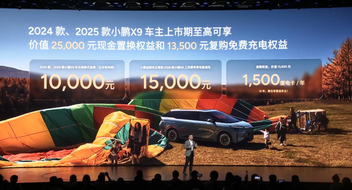 30.98-36.98万的新纯电X9有竞争力吗? 七座布局,智能大七座 第二代VLA 三排电动折叠、二排带过道零重力座椅、主动后轮转向和双腔空悬 主动降噪、9安全气囊、零重力座椅气囊 5C充电、最大续航750km,8分钟补能 400km,电耗百公里15.9kWh 基础参数:5316*1988*1785mm,轴距3160mm(中大型MPV) 驱动形式:纯电/增程(单电机前驱/四驱) 功率:235kW 续航:650-750km 平台:800V 充电效率:5C 电池容量:94.8kWh 电池类型:磷酸铁锂 智驾硬件:智驾高清摄像头/毫米波雷达/超声波雷达/OMS摄像头 智驾芯片:图灵AI芯片 座舱芯片:SA8295P 轮毂尺寸:19/20(可选) 颜色:外银/白/黑/紫/青/灰,内灰/咖/棕 屏幕:10.25液晶仪表/17.3中控/21.4娱乐屏/HUD 座椅:真皮座椅(可选Nappa)/主副驾电调加热通风按摩/二排零重力+电调按摩通风/三排加热 其他配置:220v车内插座/50w无线充*4/哨兵模式/行车影像/360摄像头/ 650km续航 655 Max 30.98万 1*图灵/自动泊车/遥控泊车 650 Ultra SE 32.18万 2*图灵/二代VLA 650 Ultra 32.98万 3*图灵/VLM私人官家 750km续航 750 Ultra 34.98万 710 四驱 Ultra 36.98万 冰雪稳定系统/双电机四驱 增程版 1602 Ultra SE 32.18万 教授觉得价格真的也越来越低了,最低起步价都杀到31万的区间了,考虑到今年的税,也就是最低1.5万,最大也不到2万的税,价格还是很香的。虽然说锂电、芯片最近都在降价,但小鹏还是在降价呀。要是对比腾势D9的车型,小鹏还是有优势啊。配置方面,需要VLA的话,32.18万的事不错的配置,不差那么点钱就直接650U的带VLM的配置。750续航按需选购即可。除了低配,基本都推荐。【来自懂车帝车友圈】