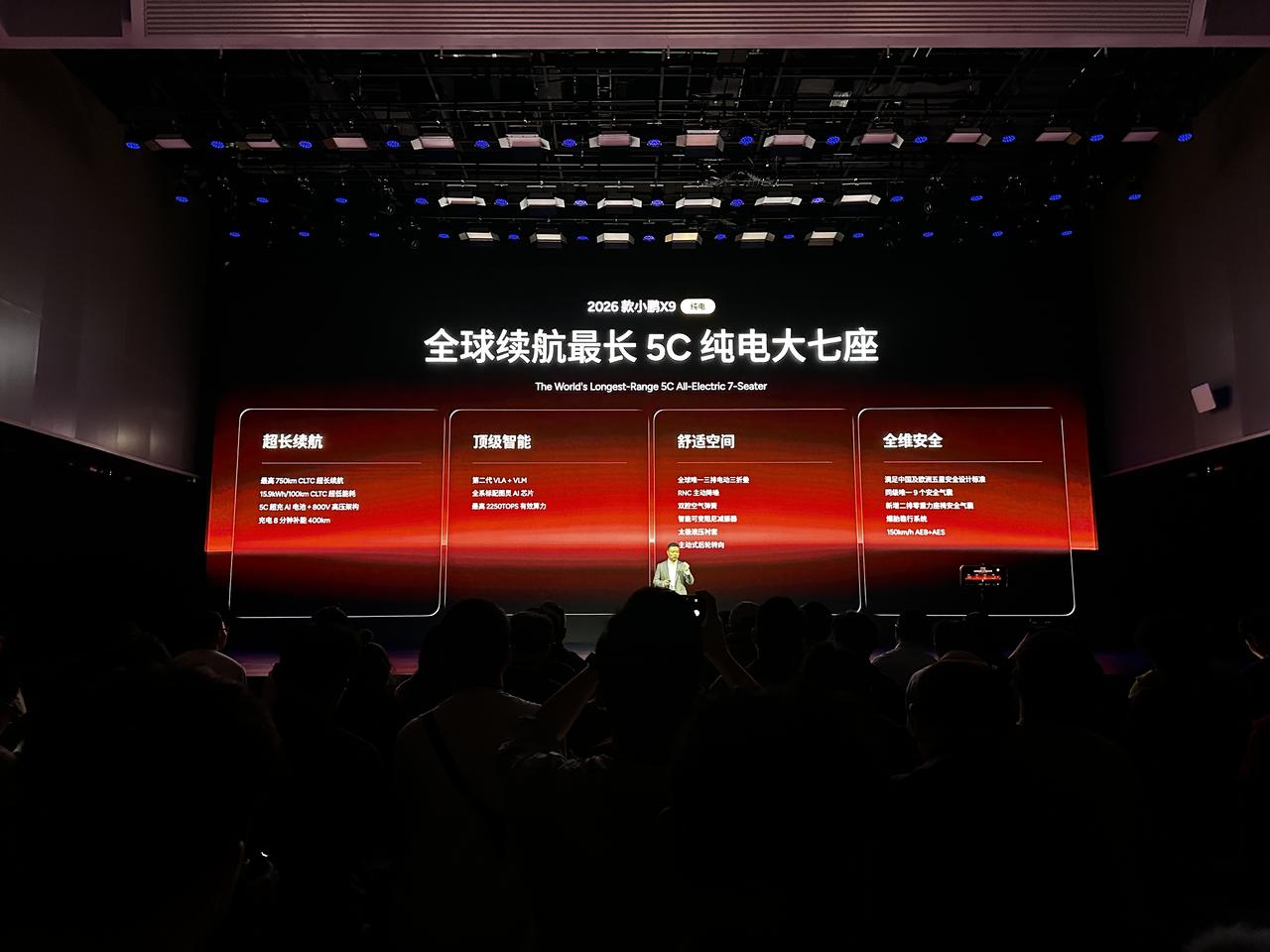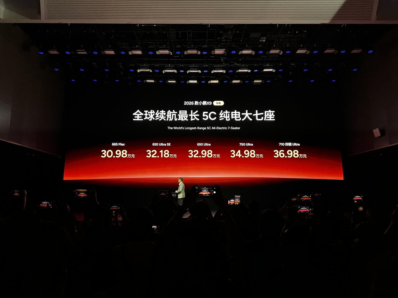 【售价30.98万元起,配备第二代VLA,新款小鹏X9纯电版上市】3月2日,新款小鹏X9纯电版车型正式上市,共推出5款车型,售价区间为30.98万-36.98万元;同时公布2026款小鹏X9增程版新增车型1602 Ultra SE售价32.18万元。外观方面,新款小鹏X9纯电版延续家族式设计语言,分体式灯组+封闭式前脸辨识度突出,配备双侧电滑门,轮圈采用19英寸密条辐设计。车身尺寸方面,其长宽高分别为5316/1988/1785mm,轴距为3160mm,车长相比老款纯电版长了23mm。此外,新车提供星云紫、极光青、暗夜黑、星舰灰(哑光色)、新月银以及星云白共6种车身颜色可选。内饰方面,新车配备10.25英寸液晶仪表+17.3英寸中控屏。配置升级包括前排电吸门、二排21.4英寸娱乐屏、第二排零重力座椅新增腿托加热、第三排电动调节等,内饰提供云间玫棕、月影咖以及气宇灰共3种颜色可选。智能化方面,新车搭载第二代VLA物理世界大模型,全系标配图灵AI芯片,最高有效算力2250TOPS,城市与高速领航辅助功能进一步优化。动力上,新车全系标配800V高压平台、搭配5C超充电池,充电8分钟可增加续航400公里,提供单电机前驱/双电机四驱可选,纯电版拥有650/665/710/750km四种续航版本。【来自懂车帝车友圈】