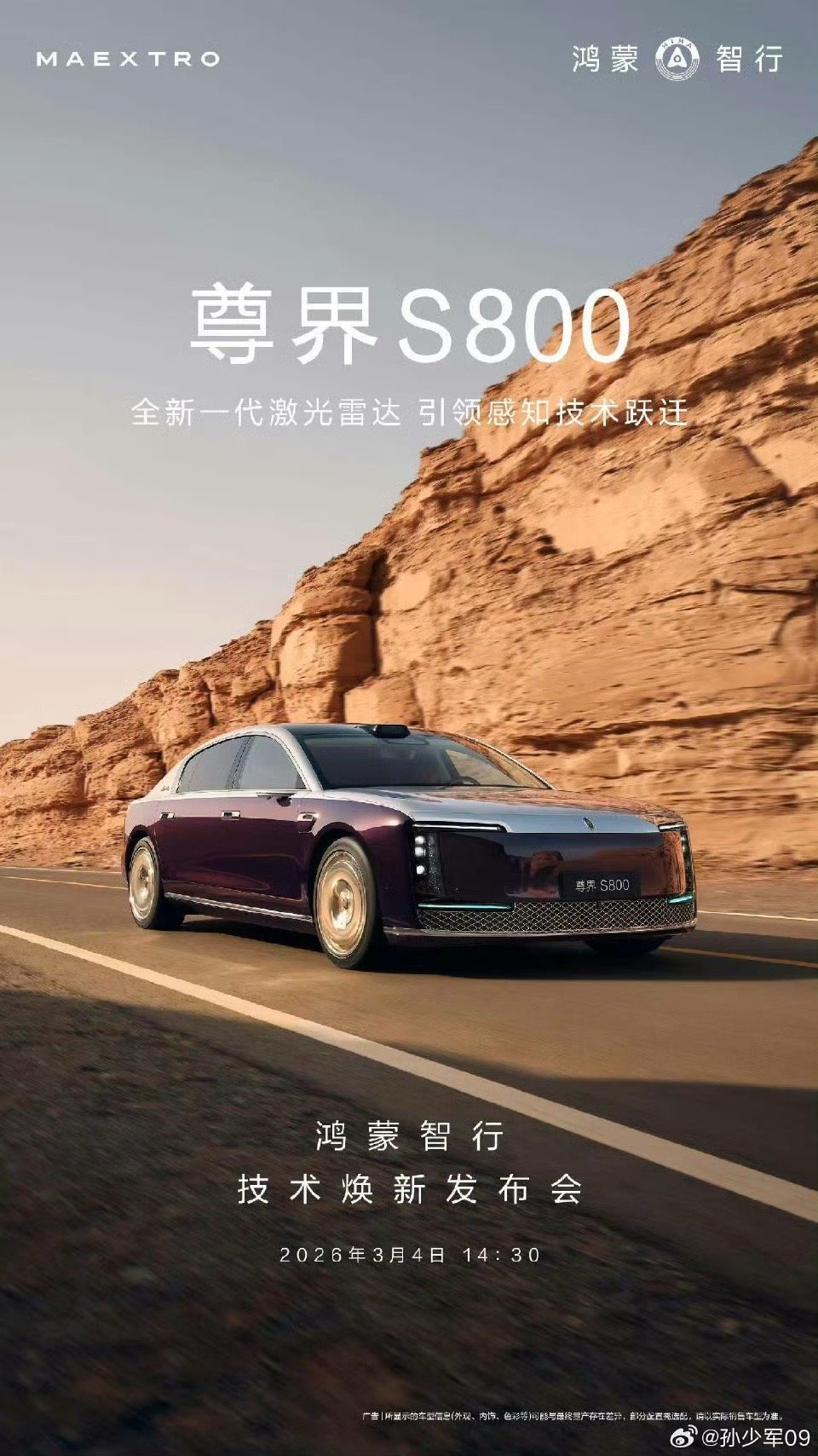 尊界S800和问界M9上全新一代激光雷达了3月4日技术发布会
