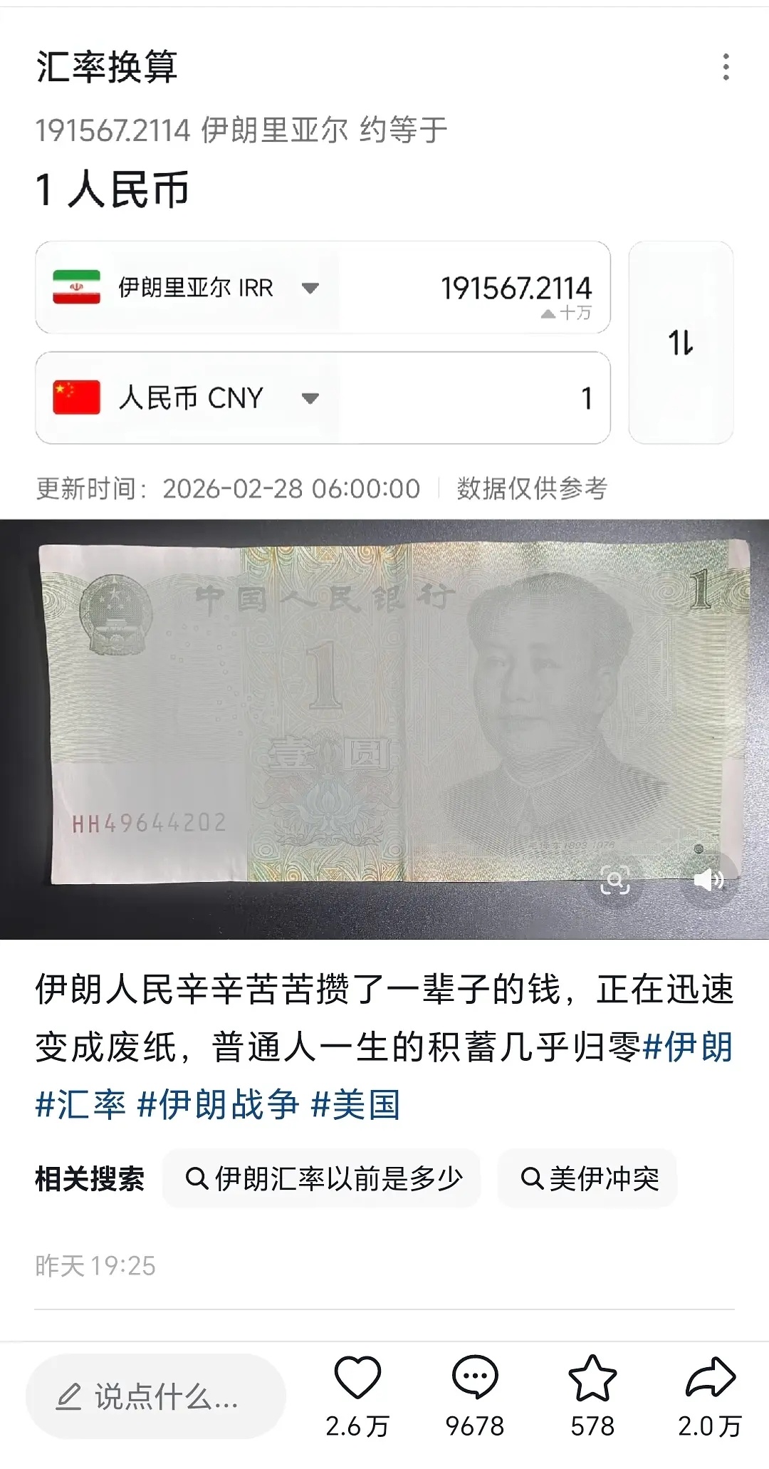 伊朗普通民众的钱正在迅速变成废纸,战争的残酷