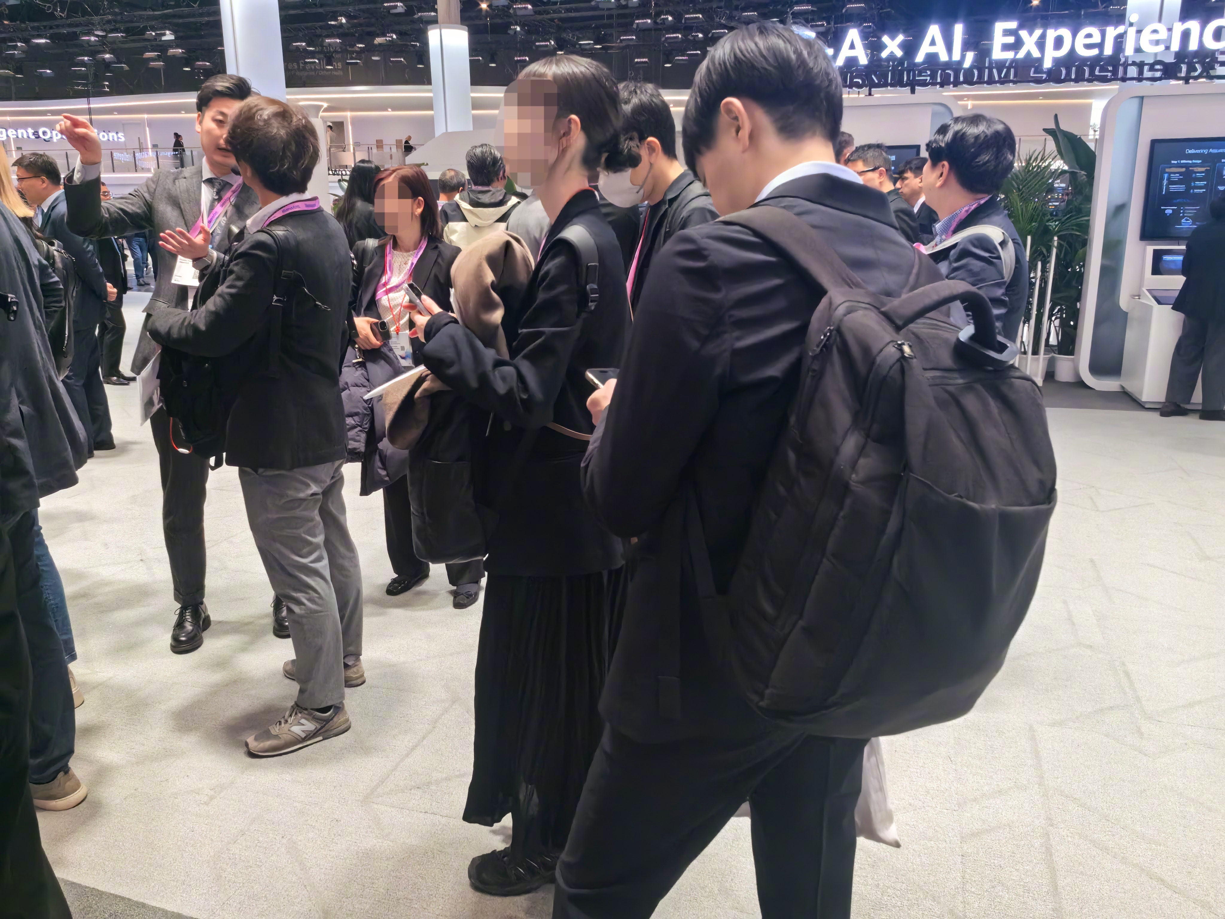 mwc2026华为展厅的日本参观团,认真听讲拍照和记录。 西班牙·巴塞罗那会展中心万丽酒店(Renaissance Barcelona Fira Hotel)