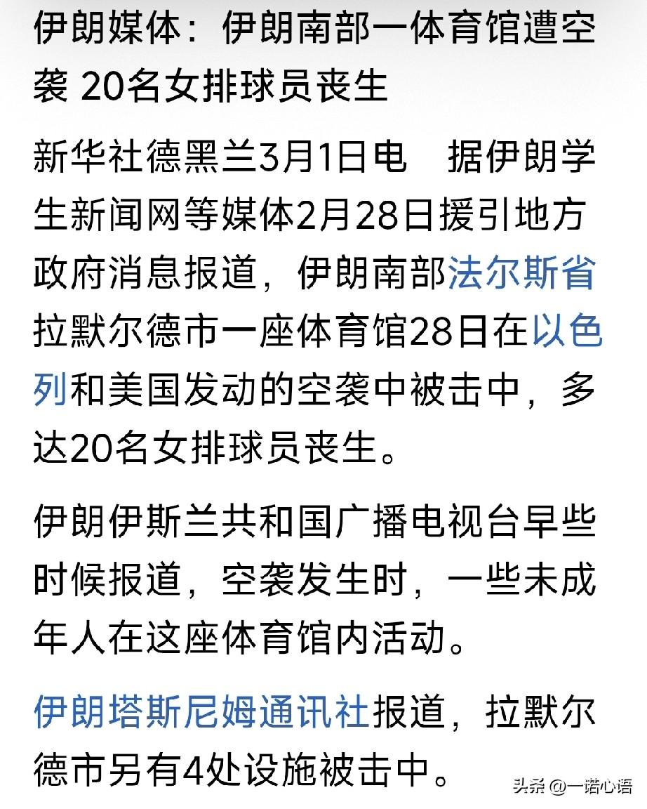 朋友整天羡慕外国人的生活,说人家这好那好,哪哪都好,这两天意外的沉默了! 我问他这两天儿咋不发表言论了?他说,他觉得现在只有中国最好,要吃有吃,要喝有喝,关键是安全,现在这世界太乱了!这老美想打谁儿就打谁儿,太不讲道理了,只有在中国才有安全感。 这两天美国向伊朗一顿大炮,把他轰明白了,没有强大的祖国,哪有老百姓的幸福生活? 特朗普这手一指,指不定哪里遭殃,他说的可真好:伊朗人民自由民主的生活马上就要到来了…… 可体育馆遭袭后20名女排队员丧生,20个鲜活的生命,就这样消失了,这就是特朗普标榜的自由和民主吗? 他这是唬傻子呢吧!