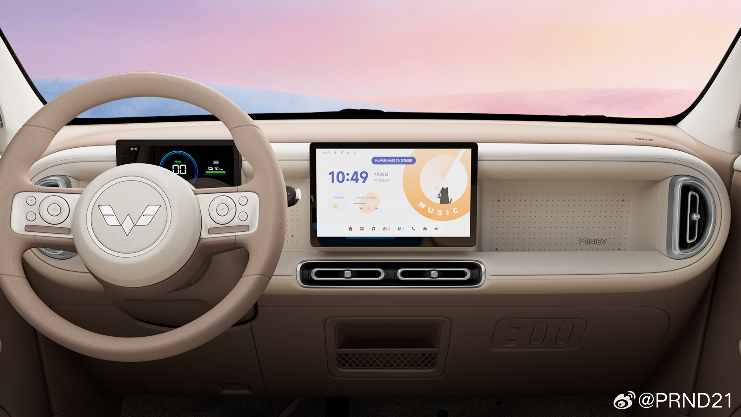 五菱新的宏光MINIEV出内饰图了,和外观相对应也是温馨复古风的,挺带感,是很戳