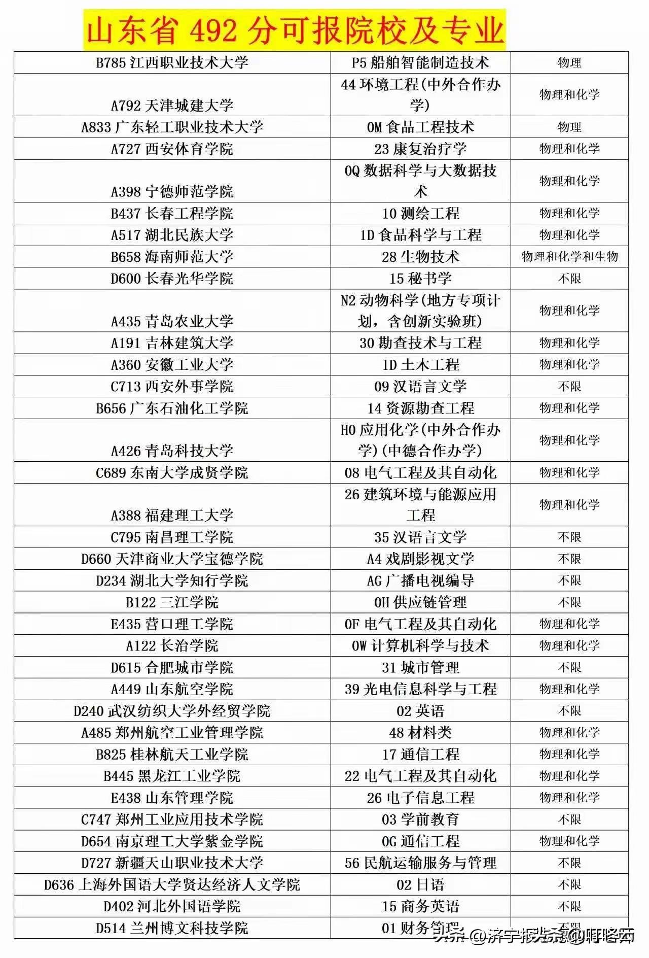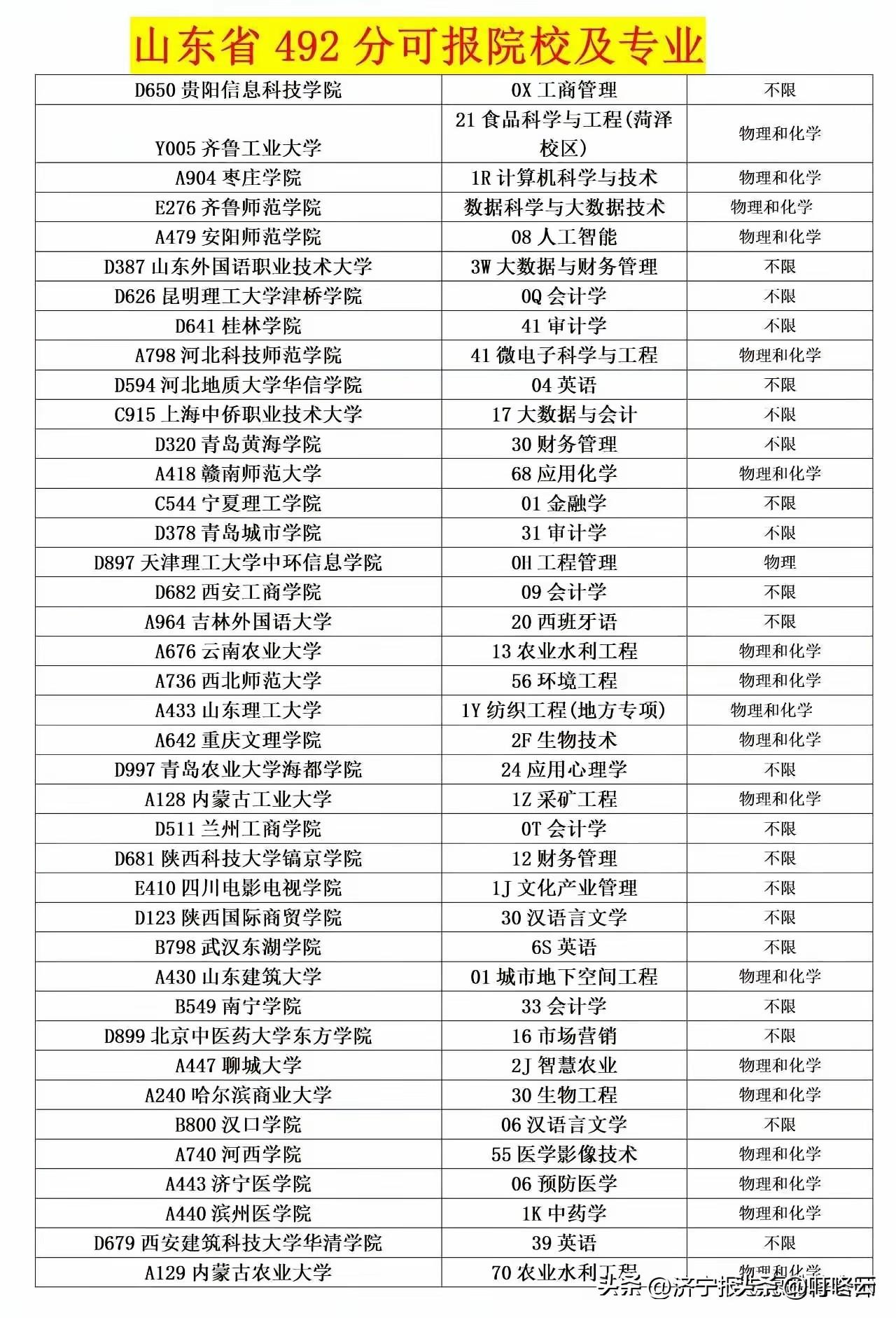 捡漏好机会!山东省490多分能报这些学校!山东492分:不是“压线边缘”,是“捡漏黄金位”!速速围观揭秘详细内容![烟花][烟花][福][福] 山东高考492分,别再对着榜单emo!复盘近三年录取数据,这个分数段堪称“性价比天花板”——看似卡在本科中游,实则手握冲稳保的万能钥匙。[强][强] 从榜单看,这个分数能解锁多重惊喜:想冲公办,齐鲁工业大学、聊城大学的地方专项招手;想稳专业,计算机、会计、康复治疗学等热门岗全覆盖;想保兜底,一众优质院校的特色专业堪称“职场跳板”。物理类考生可冲船舶智能制造、电气工程,化学类锁定应用化学、生物技术,不限选科的汉语言、会计更是“考编香饽饽”。[汤圆][汤圆] 别迷信“高分才有机遇”,492分的战场,拼的是精准卡位。“春风得意马蹄疾,金榜题名正当时”,2026马年,抓住这份数据清单,精准填报,你也能在大学赛道上一骑绝尘![锦鲤到来][锦鲤到来] 欢迎关注@叮咚云 将优先为粉丝职业规划指导,1对1咨询是付费服务,为你定制最适合的就业择业方案!欢迎留言交流讨论。[来看我][来看我] 免责声明:图片来自网络,仅供参考! 青岛各区gdp