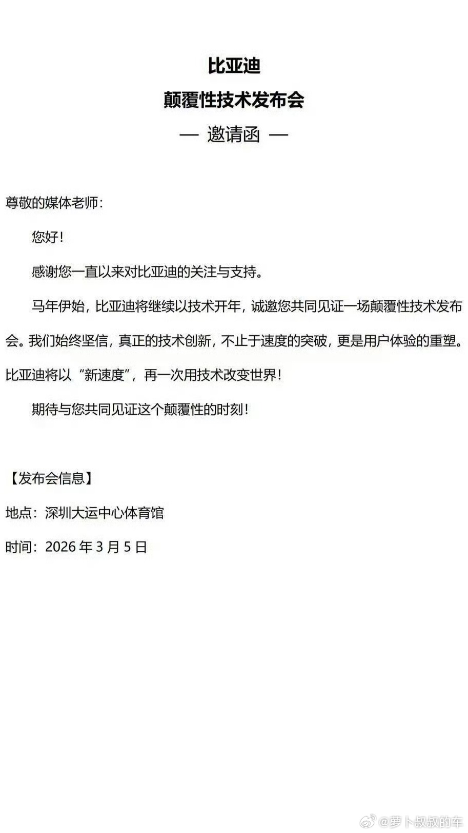 王传福去年预告的“更惊艳的技术”这就来了,3月5号比亚迪颠覆性技术发布会,迪子直