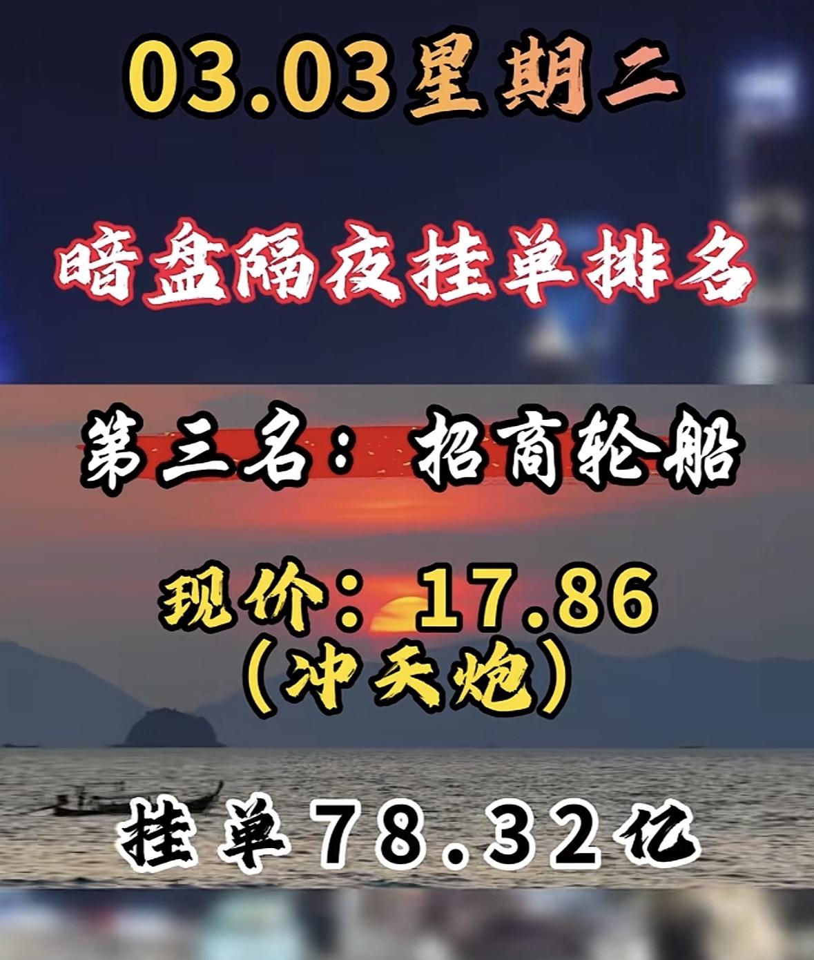 3月2日暗盘隔夜挂单前八,包钢股份现价3.24,挂单12.4e,投资需谨慎!