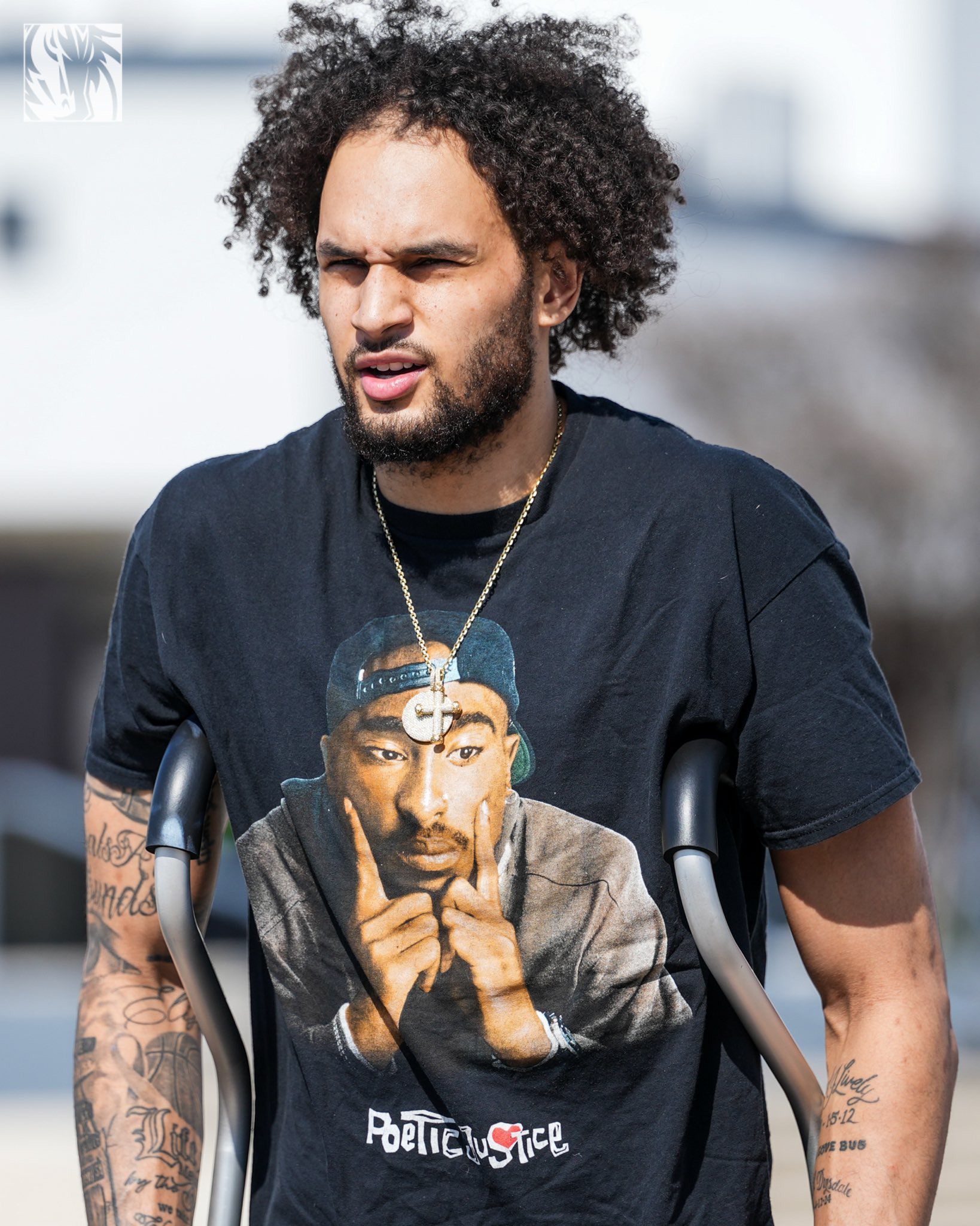 独行侠中锋莱夫利今天拄拐登机,随队飞往夏洛特。