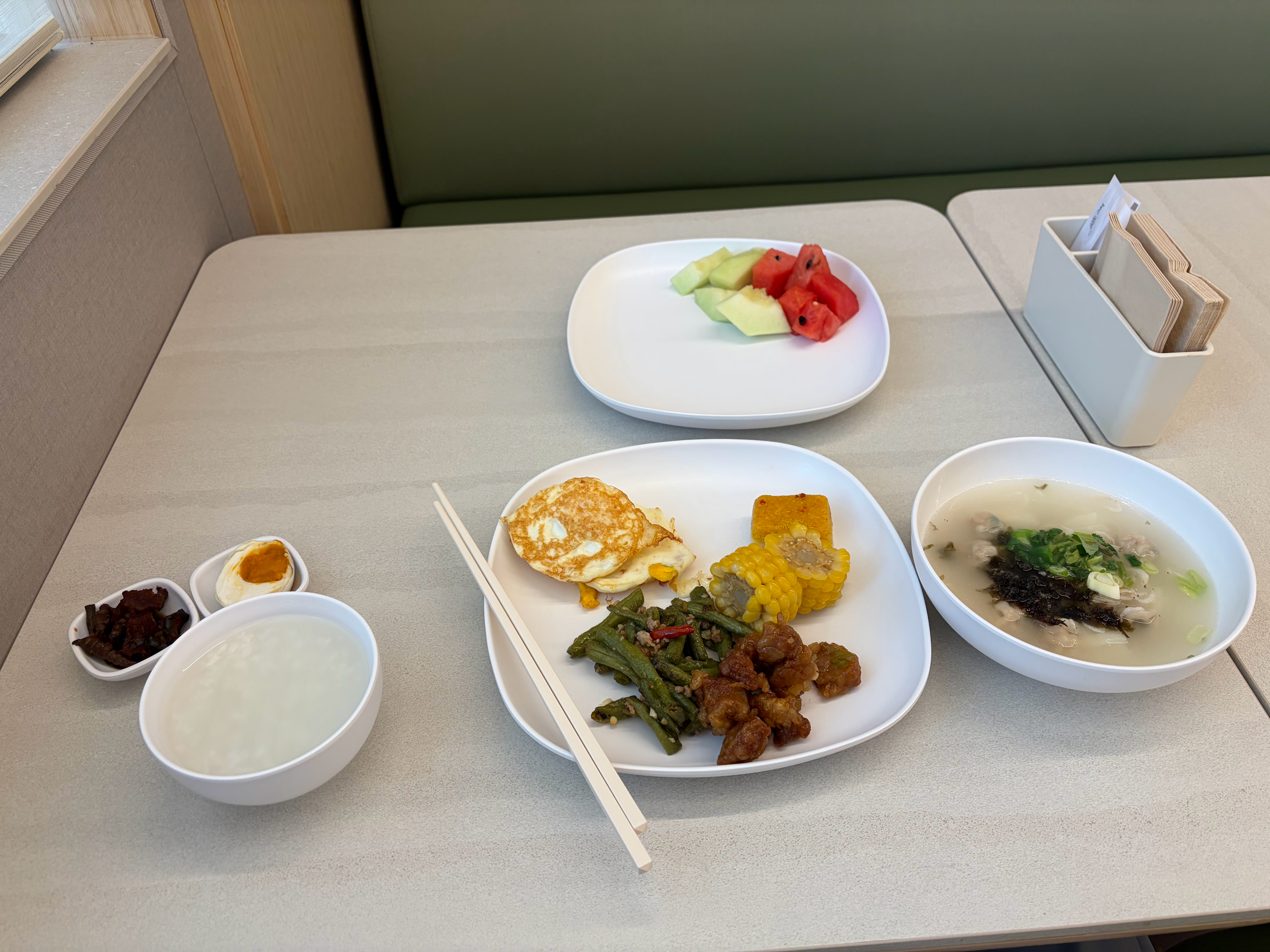 不得不说全季的早饭真不错,很适合中国胃我知道大米粥升糖快,但配小咸菜和咸鸭蛋也太