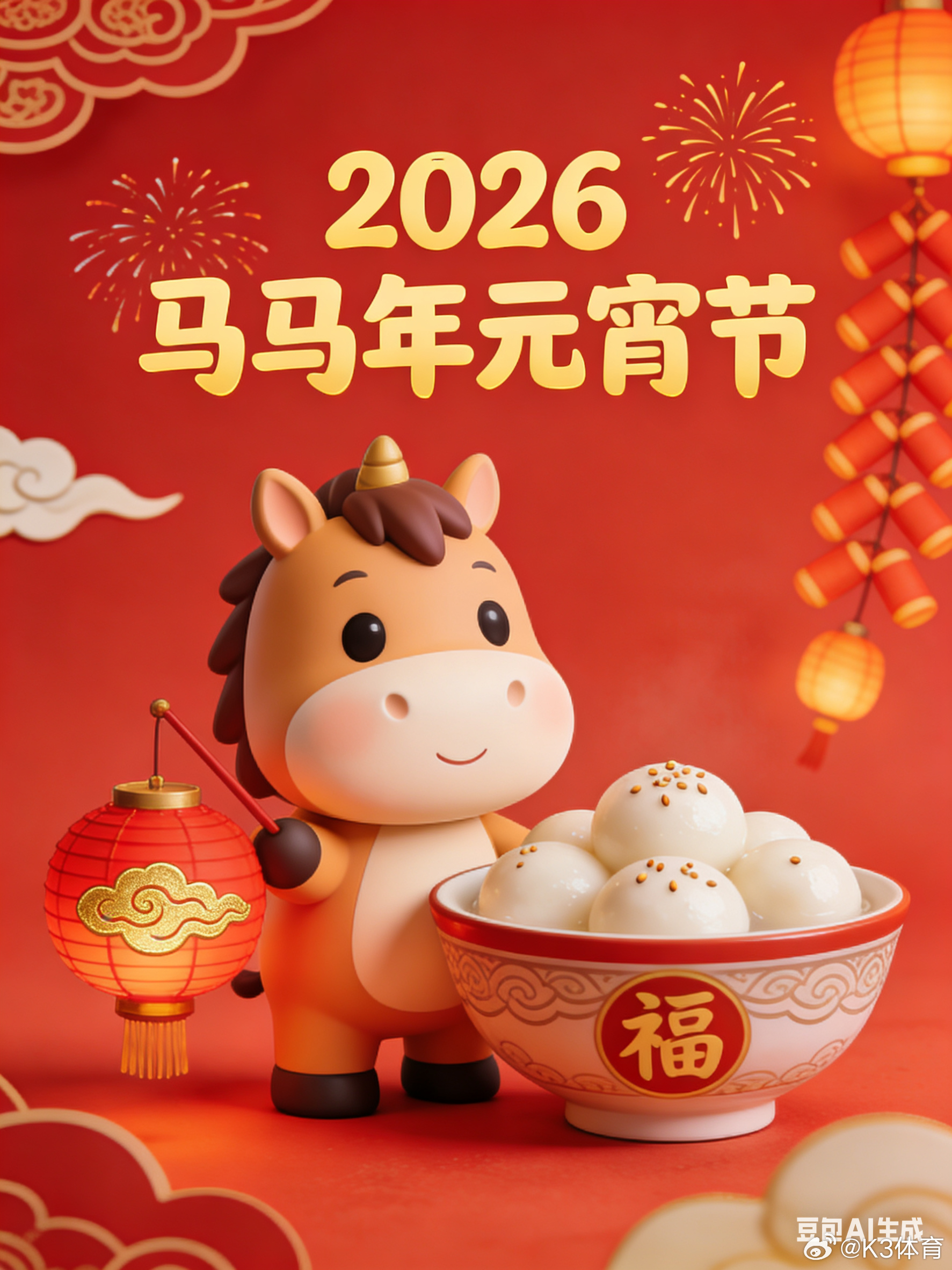 瑞马踏灯来,元宵福满宅!左手提小马灯,右手捧甜汤圆,愿新的一年,龙马精神,事事圆