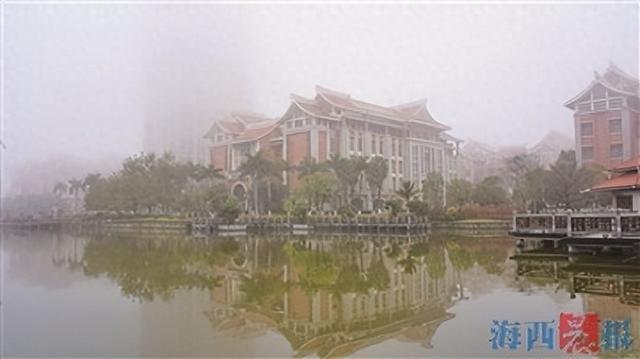 昨日早晨,集大校园被雾笼罩。晨报拍客庄莉红摄