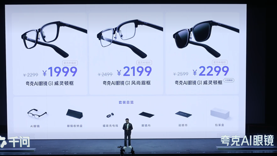 “虚”的一面在于,此次发布的千问AI眼镜,在核心硬件参数上,与几个月前发布的夸克AI眼镜并无本质区别:G1系列配备双旗舰芯片双系统、五个麦克风阵列加骨传导、大振膜高性能喇叭声学硬件等,可换电,整机重量仅约40g;拍摄方面,可实现0.6秒极速抓拍、3K视频录制,并通过AI输出4K视频,具有很好的暗光拍摄效果。