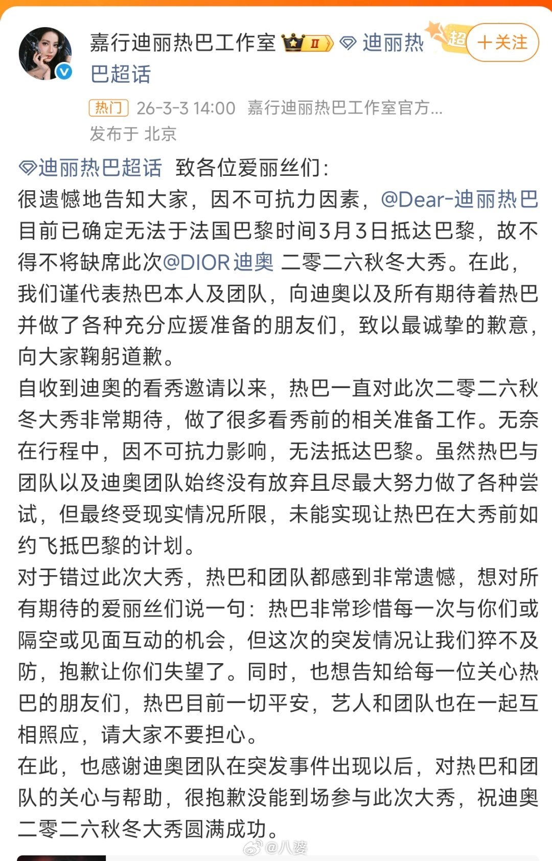 迪丽热巴 滞留迪拜这场风波从来不是“没赶上秀”那么简单。内娱团队的出行安全规范到