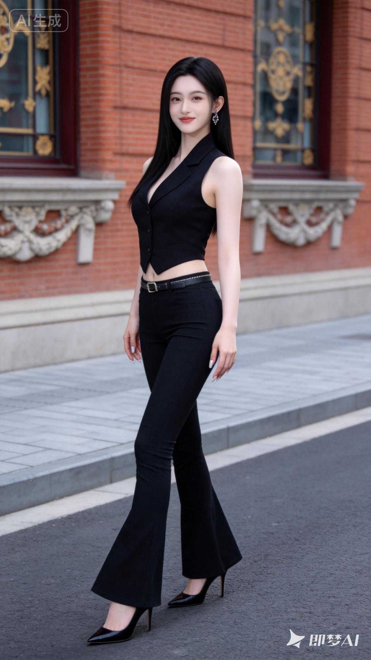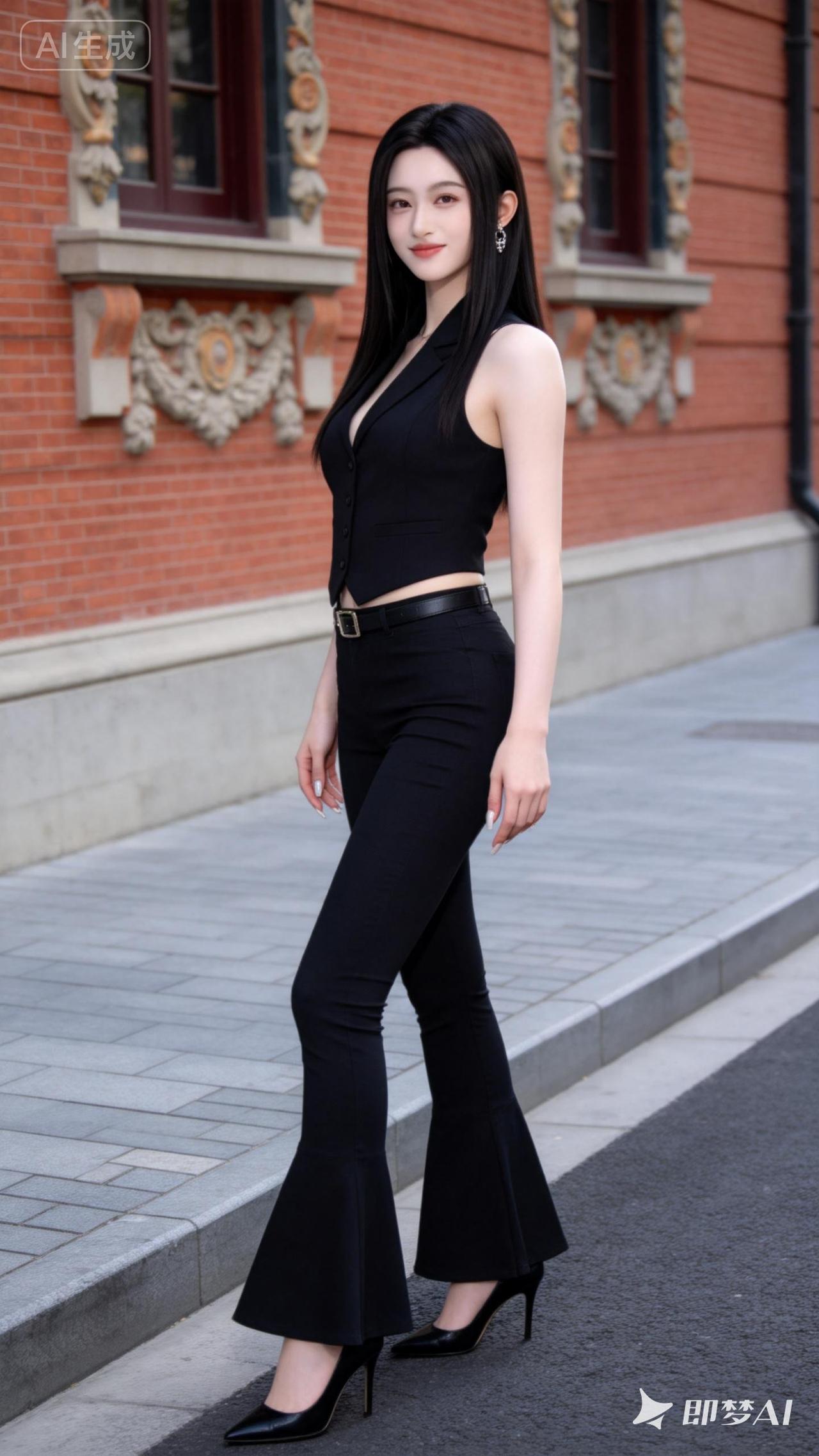 都市风穿搭,白色上衣+黑色喇叭裤,走在乡间小路上,尽显时尚与自然之美!