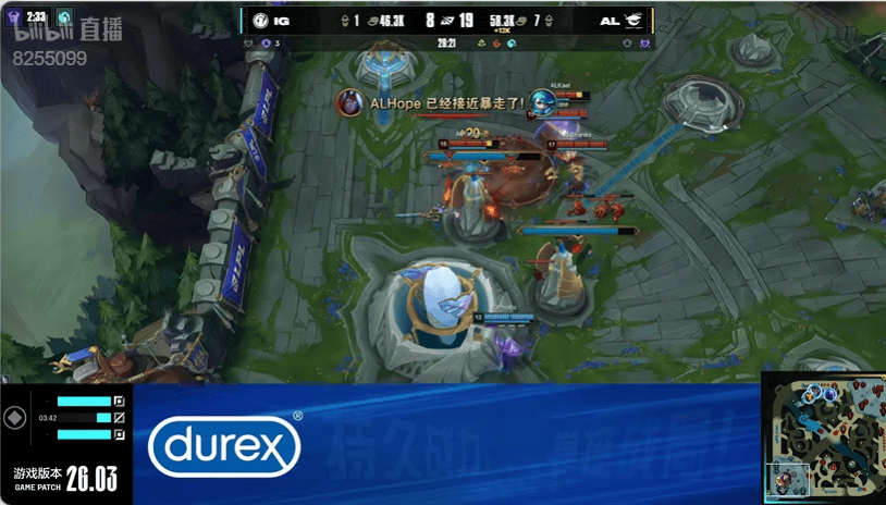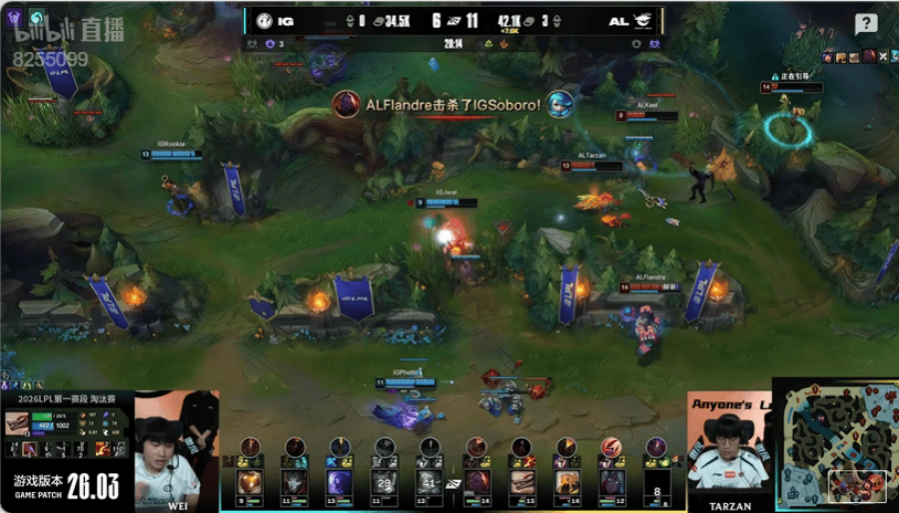 20分钟:IG集火想要击杀沙皇但是被对方丝血逃脱,AL集结反打击杀对方四人打出零换四