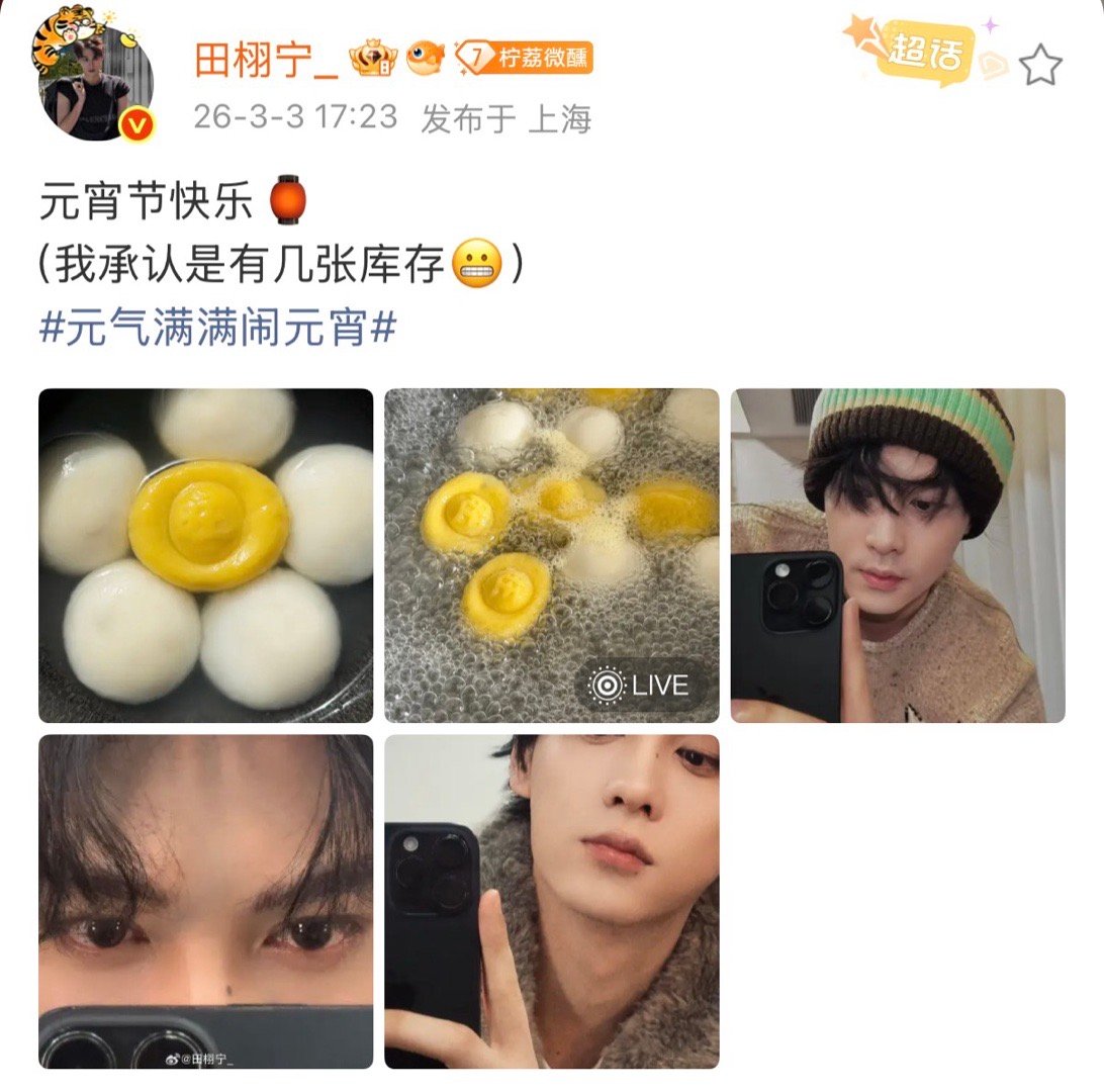 田栩宁元宵节吃了汤圆田栩宁元宵节自拍 田栩宁元宵节吃了汤圆,还有帅气的自拍🤳🏻