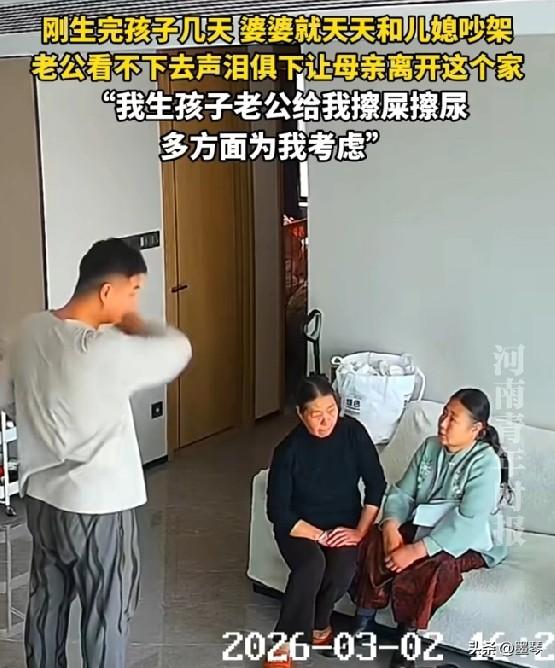 这个婆婆也不知道是为啥这样,儿媳妇坐月子天天跟儿媳妇吵架,气得儿子哭着求她让她离开,真的是全网丢脸…… 本来产妇坐月子最脆弱、最需要静养的时期,婆婆却不断挑剔、与儿媳争执,导致刚生产完的儿媳身心俱疲。 丈夫夹在中间起初试图调解,但见矛盾无法化解,最终不得不面对母亲。 他没有大吵大闹,而是声泪俱下地要求母亲离开,并说出了一句扎心的话:“你也是当过媳妇的人,当年你受过的委屈,为什么要再给别人?” 这段视频引发了全网热议,绝大多数网友都对这位丈夫的做法表示支持和点赞,评论区普遍认为: 男人的担当才是真正的护妻,懂得换位思考。 婆婆自己也经历过坐月子,不该把当年的苦再强加给下一代。 月子里的委屈最难忘,男人必须站出来主持公道。 屏幕前的朋友们,你们觉得呢?[呲牙] 小区新鲜事婆媳